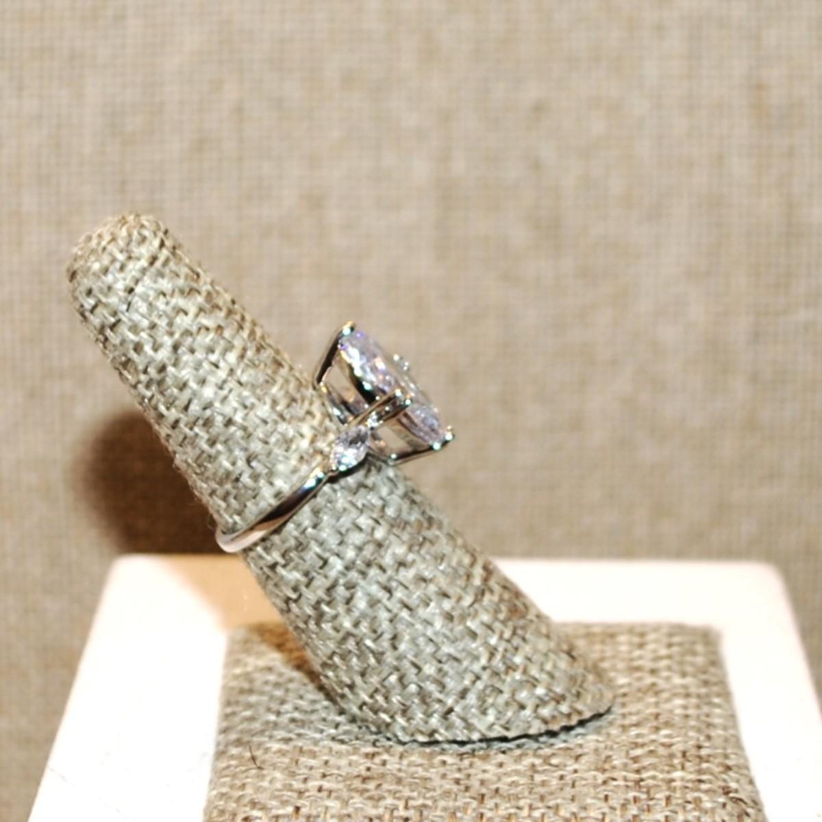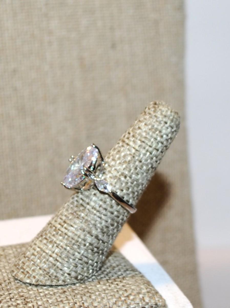 Size 6 Large Oval Clear Stone Ring with Horizontal Side Accents on a Silver Tone Band (4.4g)