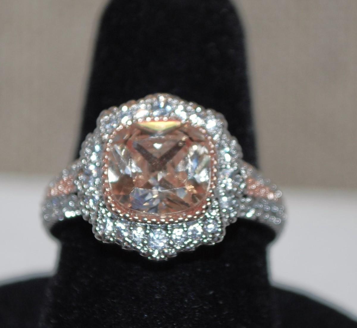 Size 6¼ Light Off-Pink Shimmer Stone Ring with a Square Cushion Cut on a .925 Silver Band (4.2g)