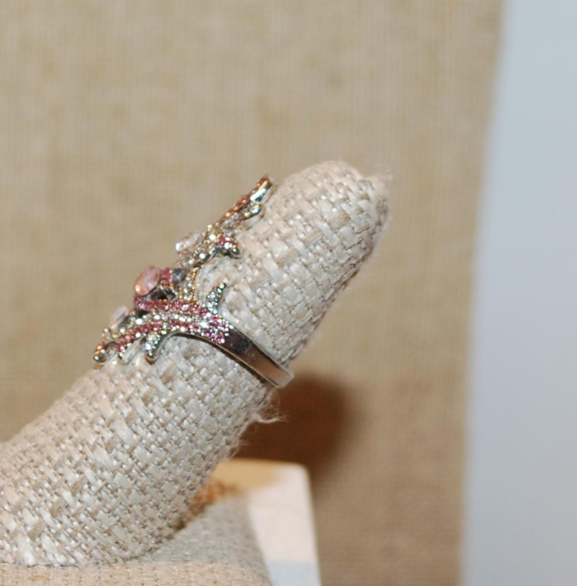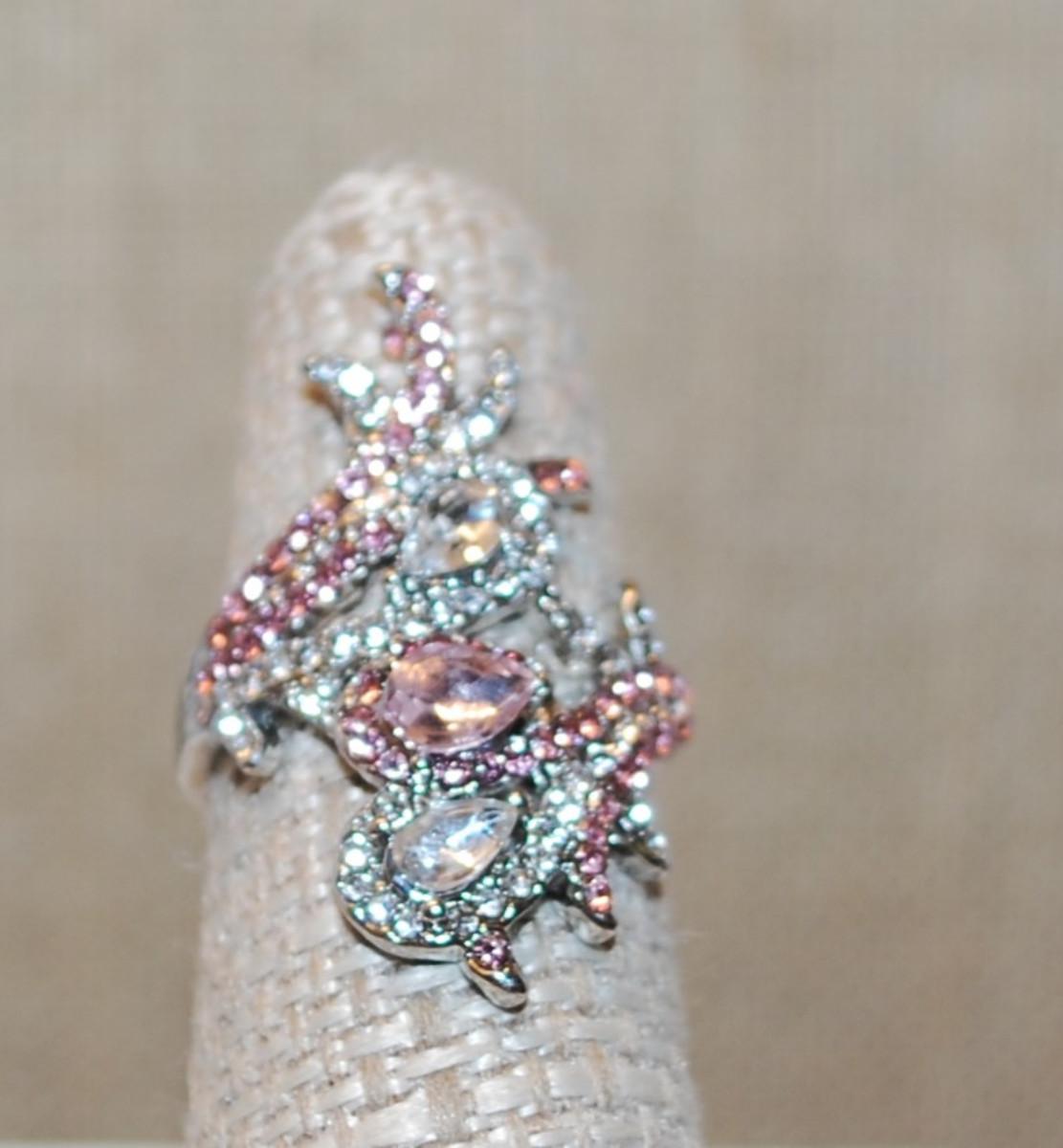 Size 6½ Light Pear Shaped Pink & Clear Stones Party Style Ring on a Silver Tone Band (5.7g)