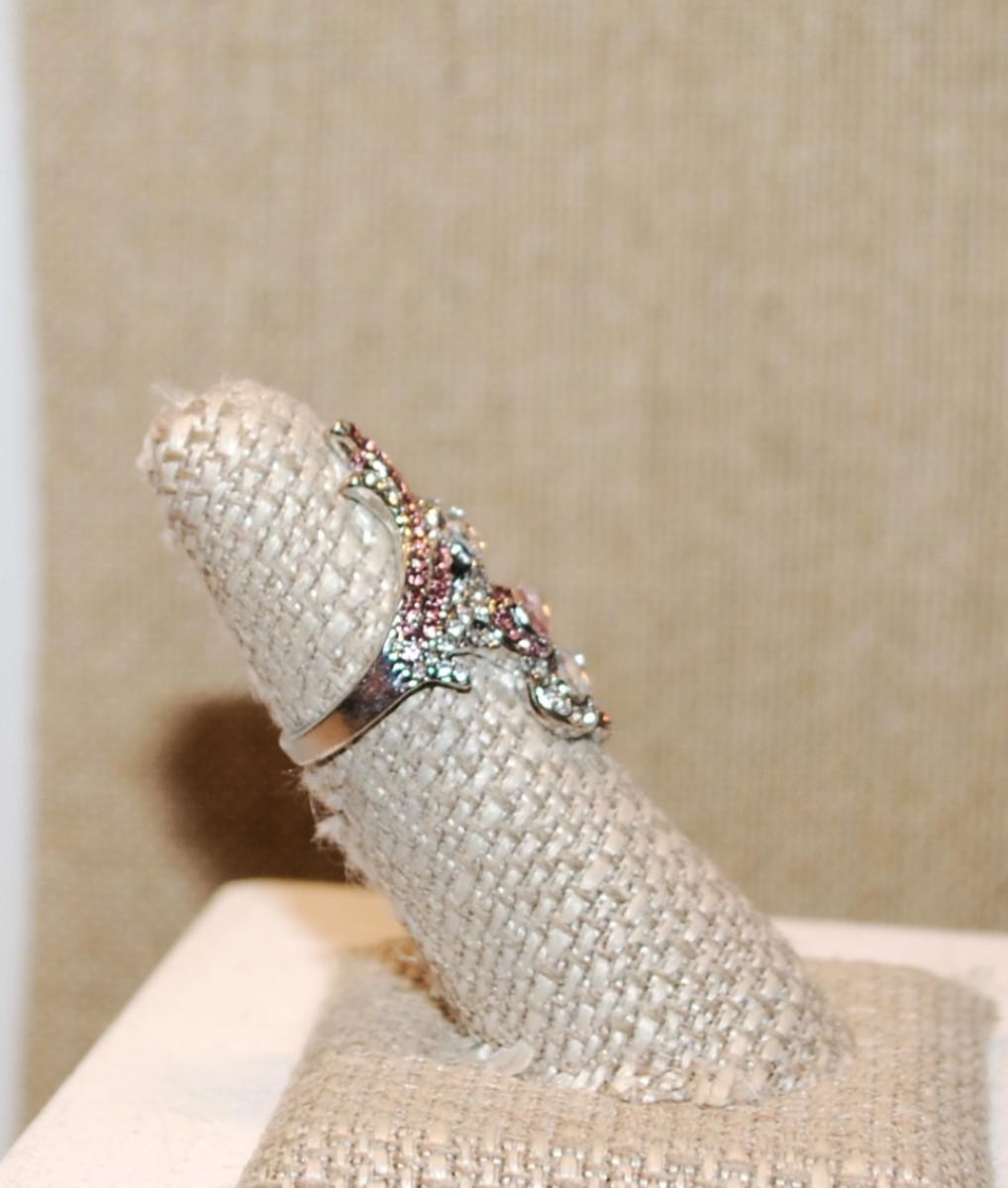 Size 6½ Light Pear Shaped Pink & Clear Stones Party Style Ring on a Silver Tone Band (5.7g)