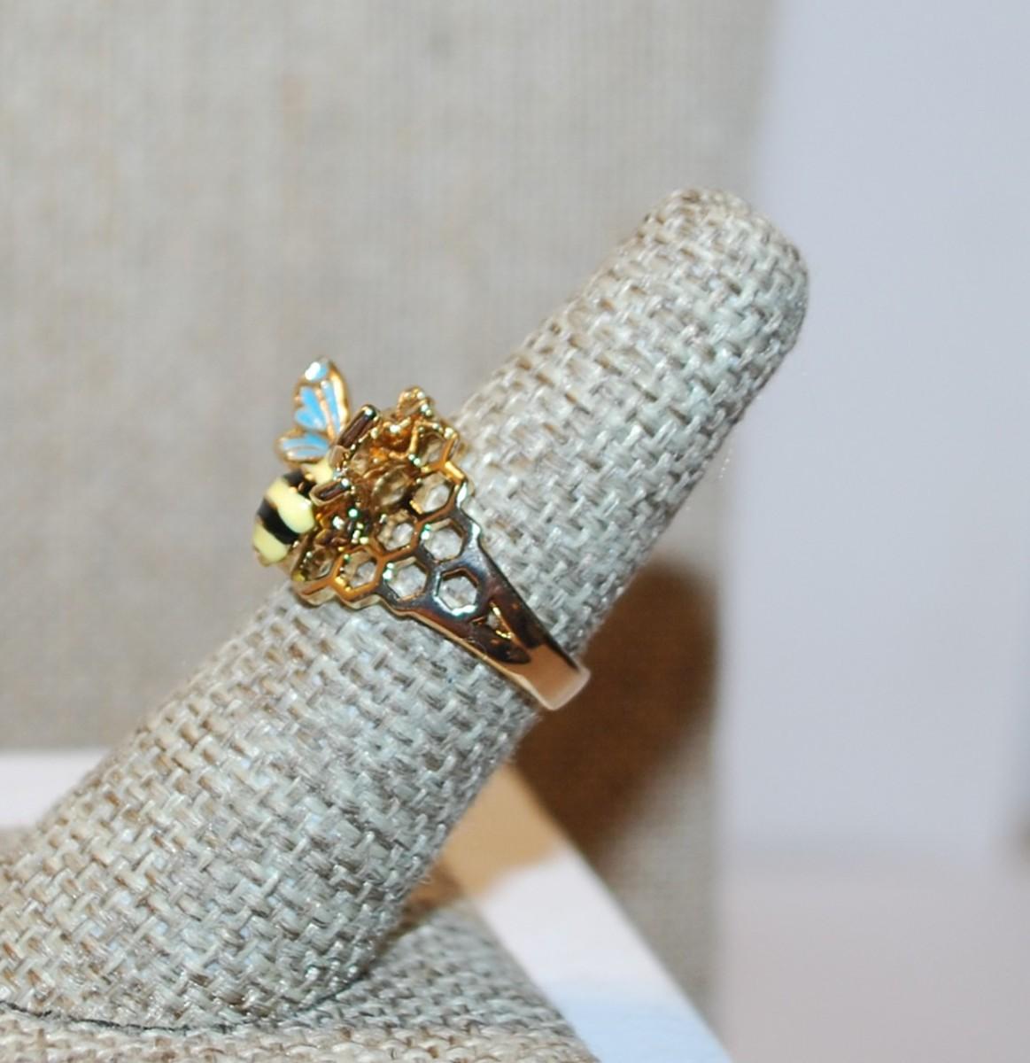 Size 6 Marked .925 Blue-Winged Yellow & Black WASP Ring on a Silver Filled Gold Colored Band (4.6g)