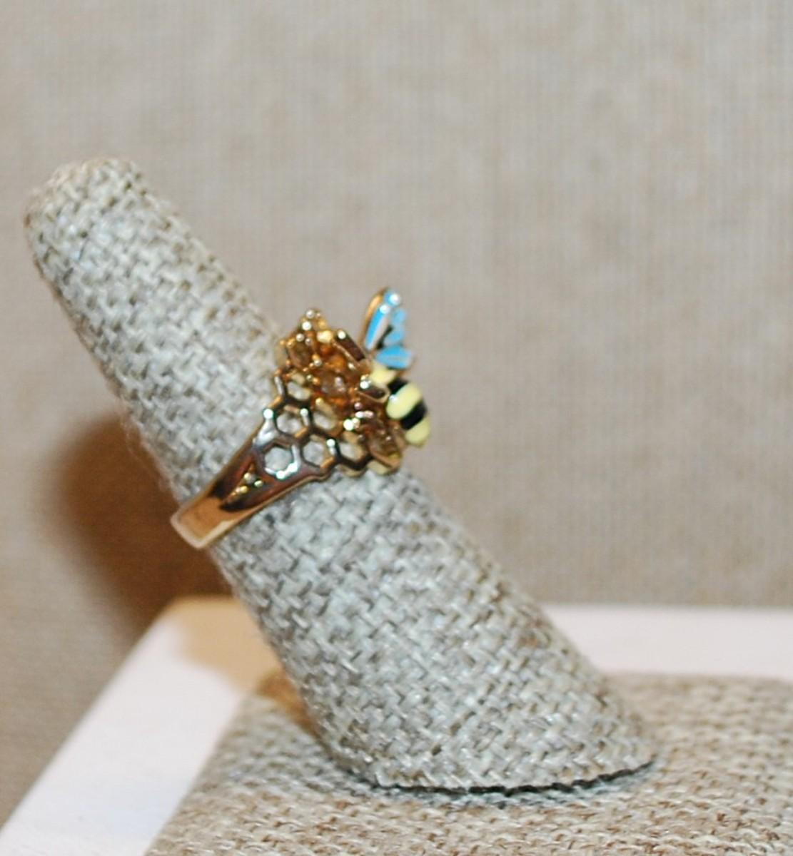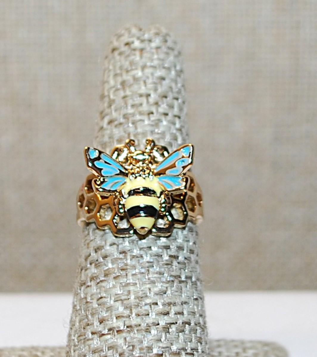 Size 6 Marked .925 Blue-Winged Yellow & Black WASP Ring on a Silver Filled Gold Colored Band (4.6g)