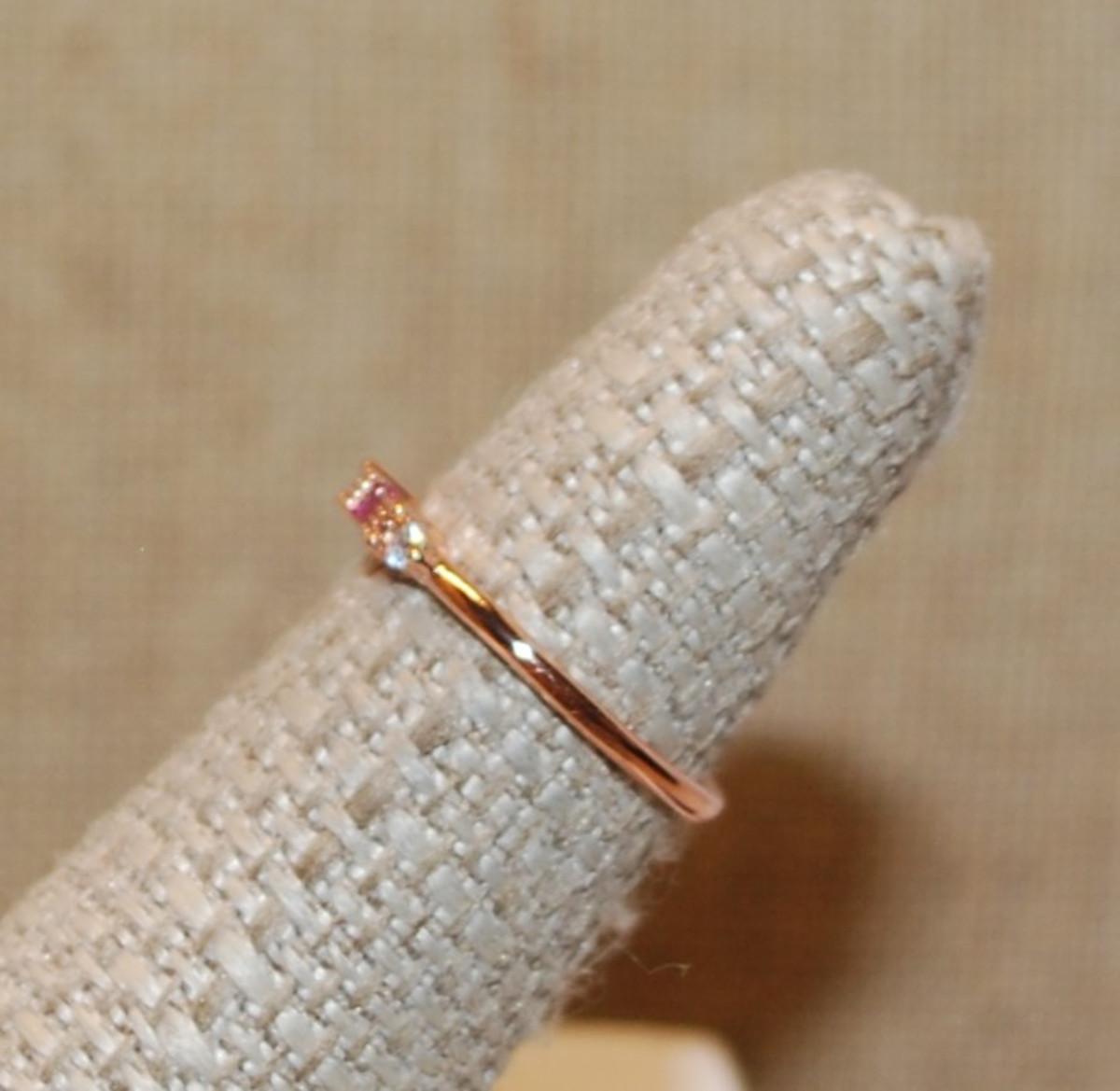 Size 6 Marked .925 Delicate RED Rectangle Stone ROSE GOLD Ring with 2 Round Clear Stone Sides on a Silver Filled Band (1.1g)