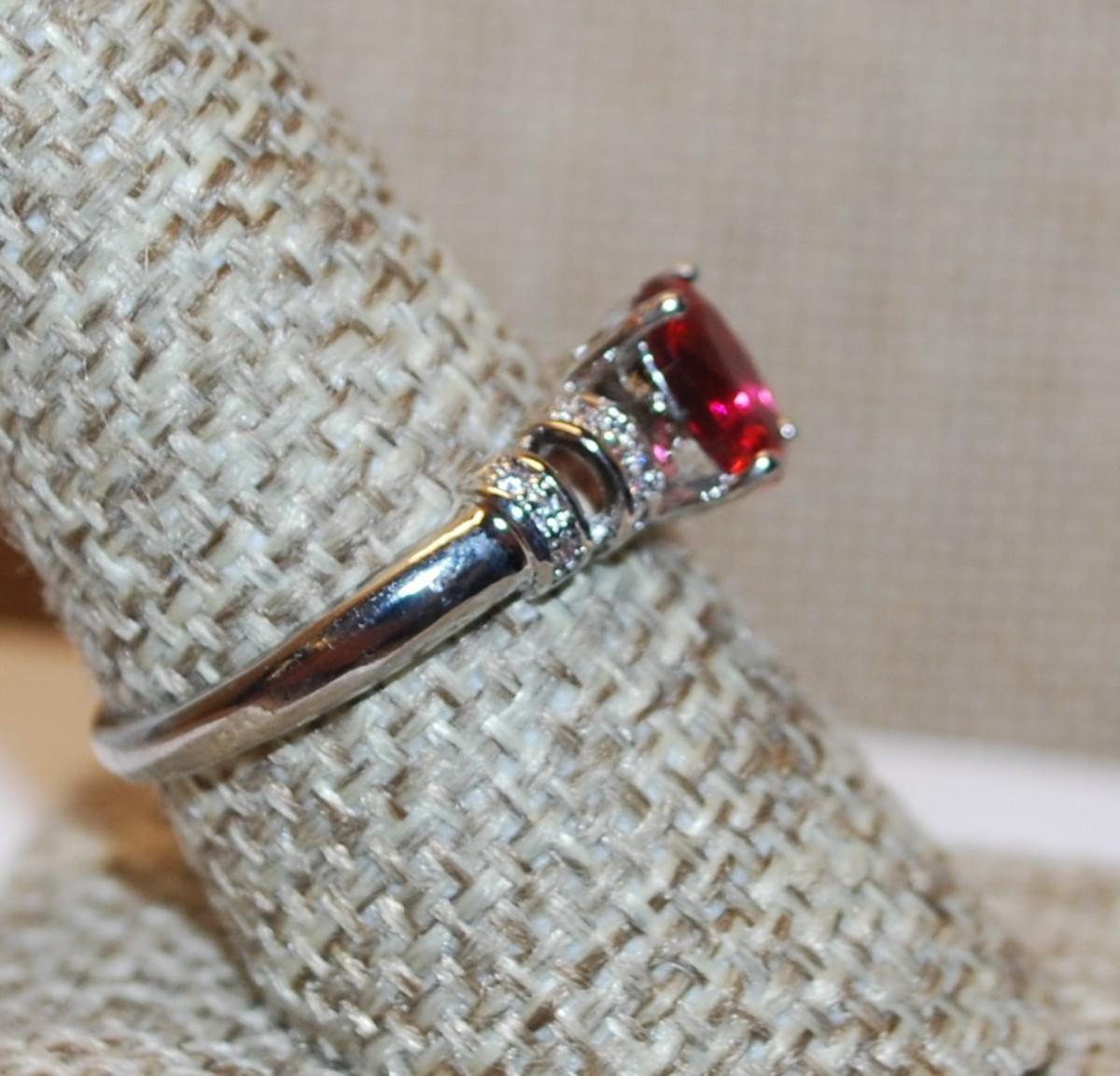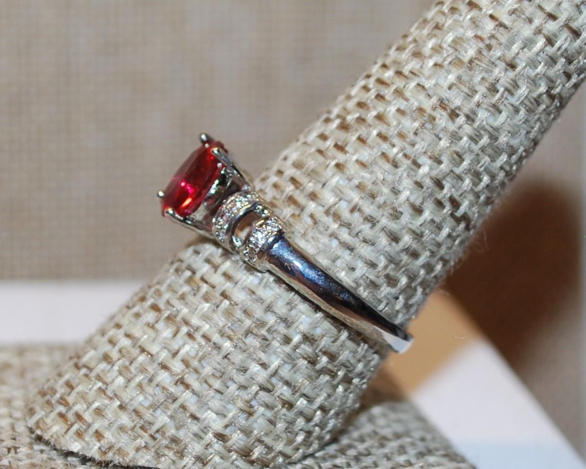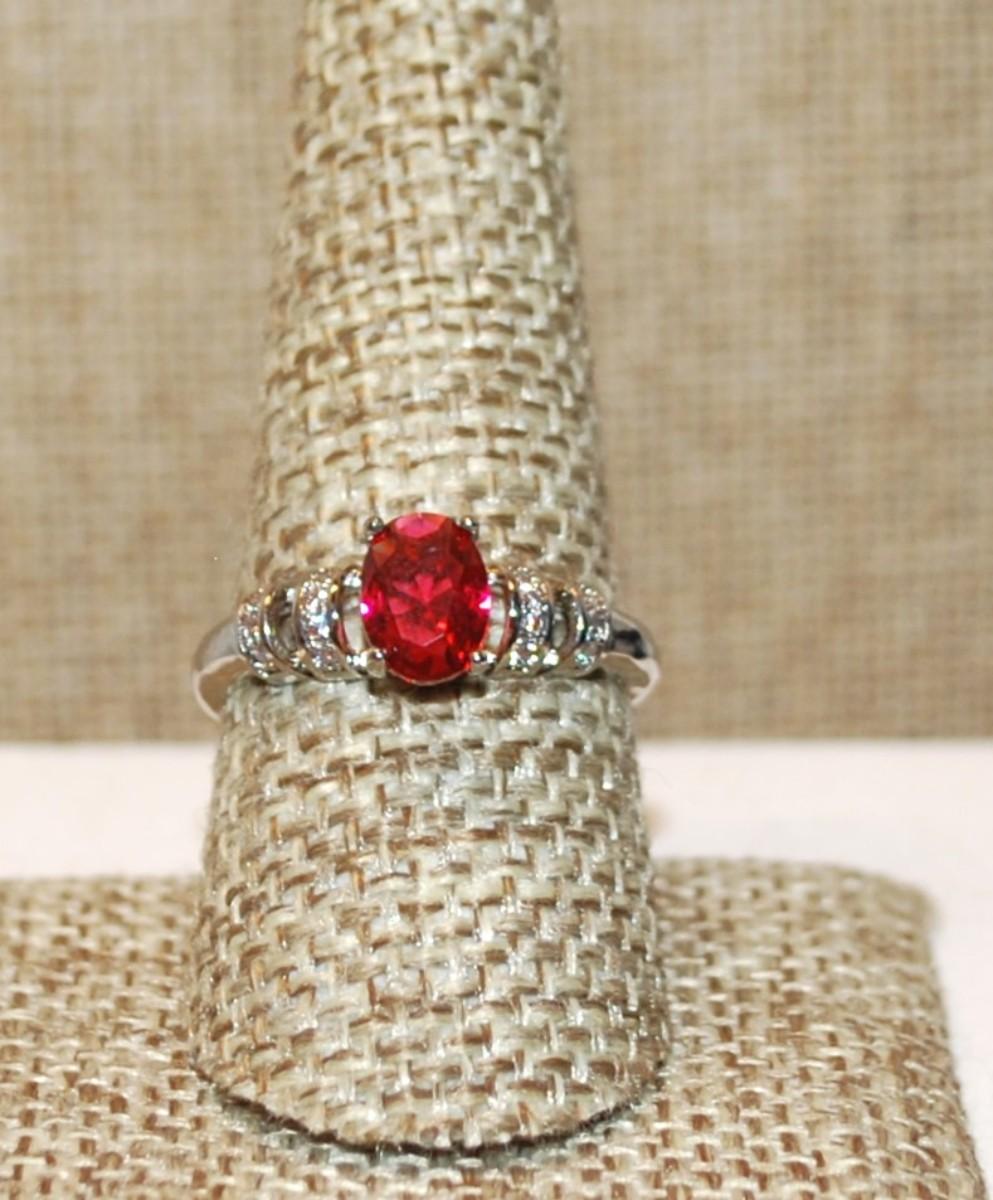 Size 6 Marked .925 Oval Deep Red Stone Ring with Side Accent "Clips" on a Silver Band (2.3g)