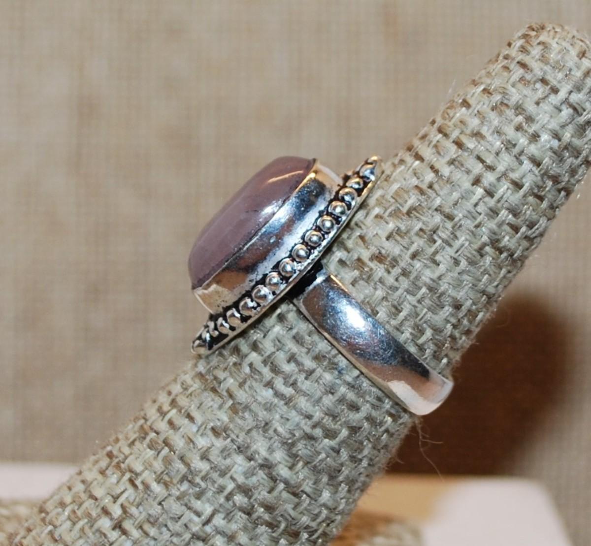 Size 6½ Marked .925 Oval PURPLE CABOCHON Gemstone Ring with Dimple Surround on a Silver-Plated Band (4.8g)