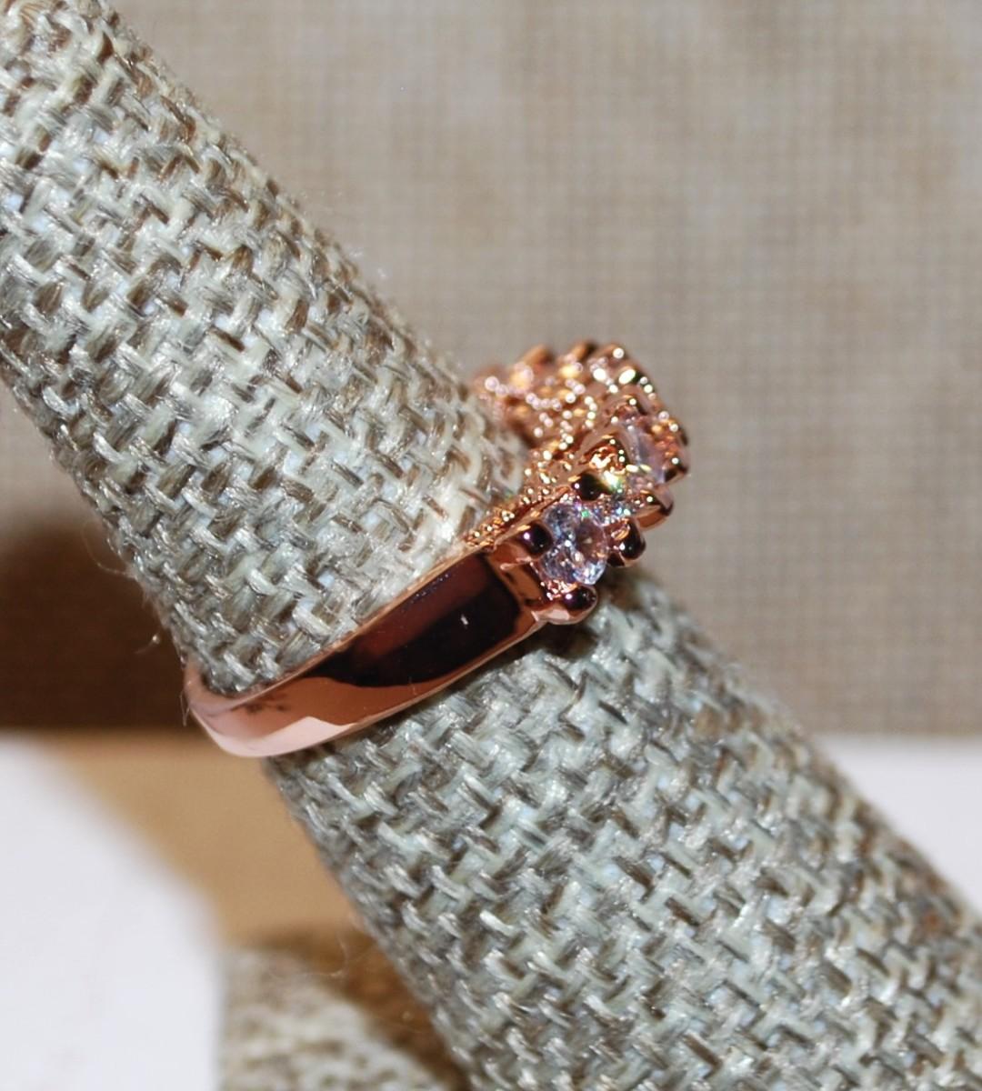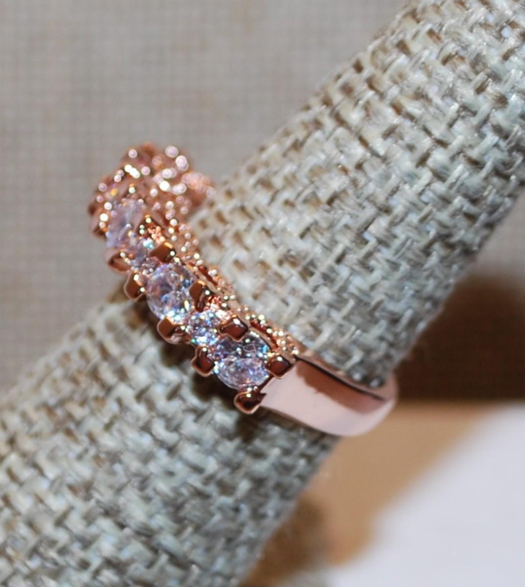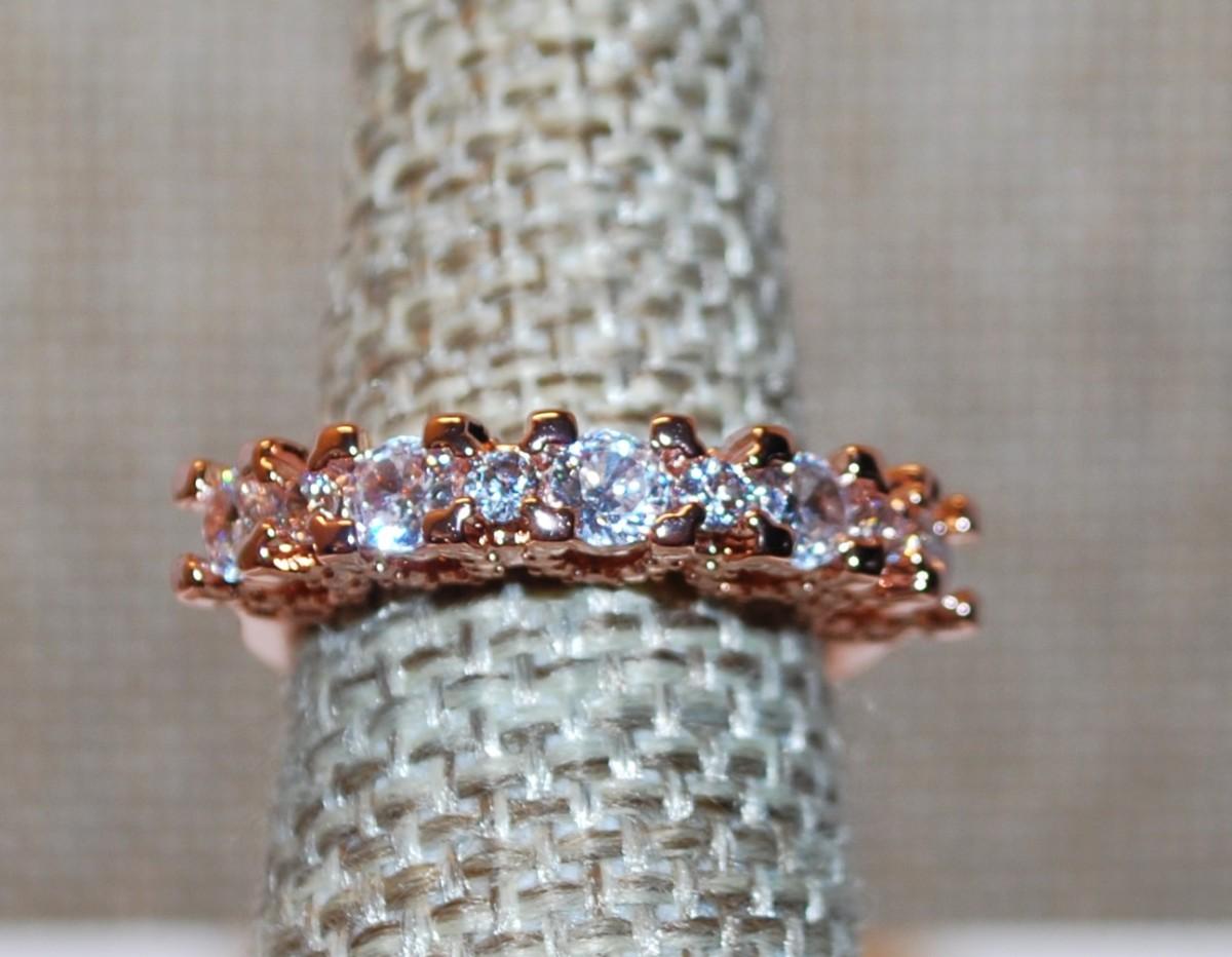 Size 6 Marked .925 Rose Gold Row of 9 Stones Ring on a Silver Filled Band (3.8g)