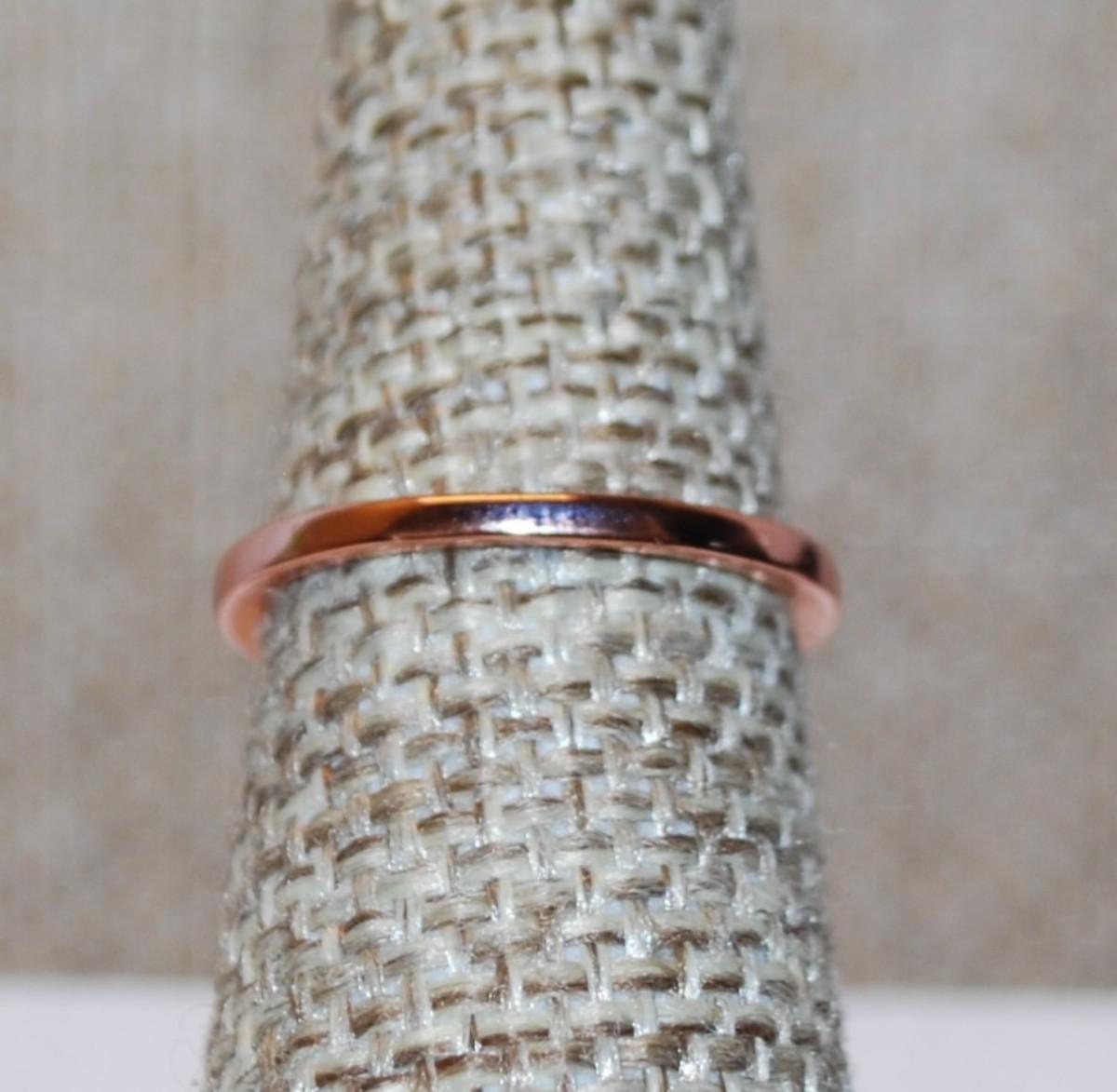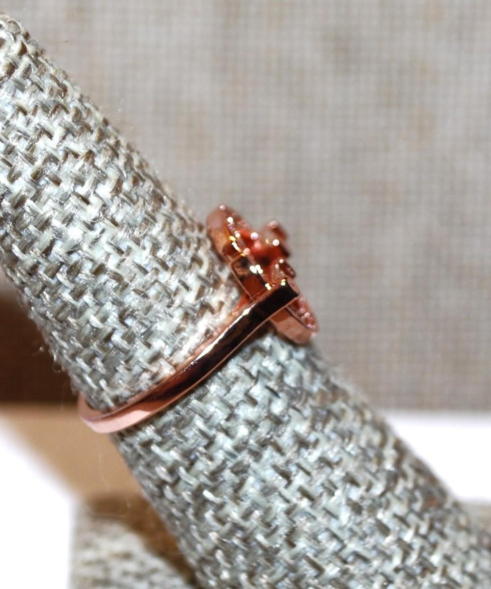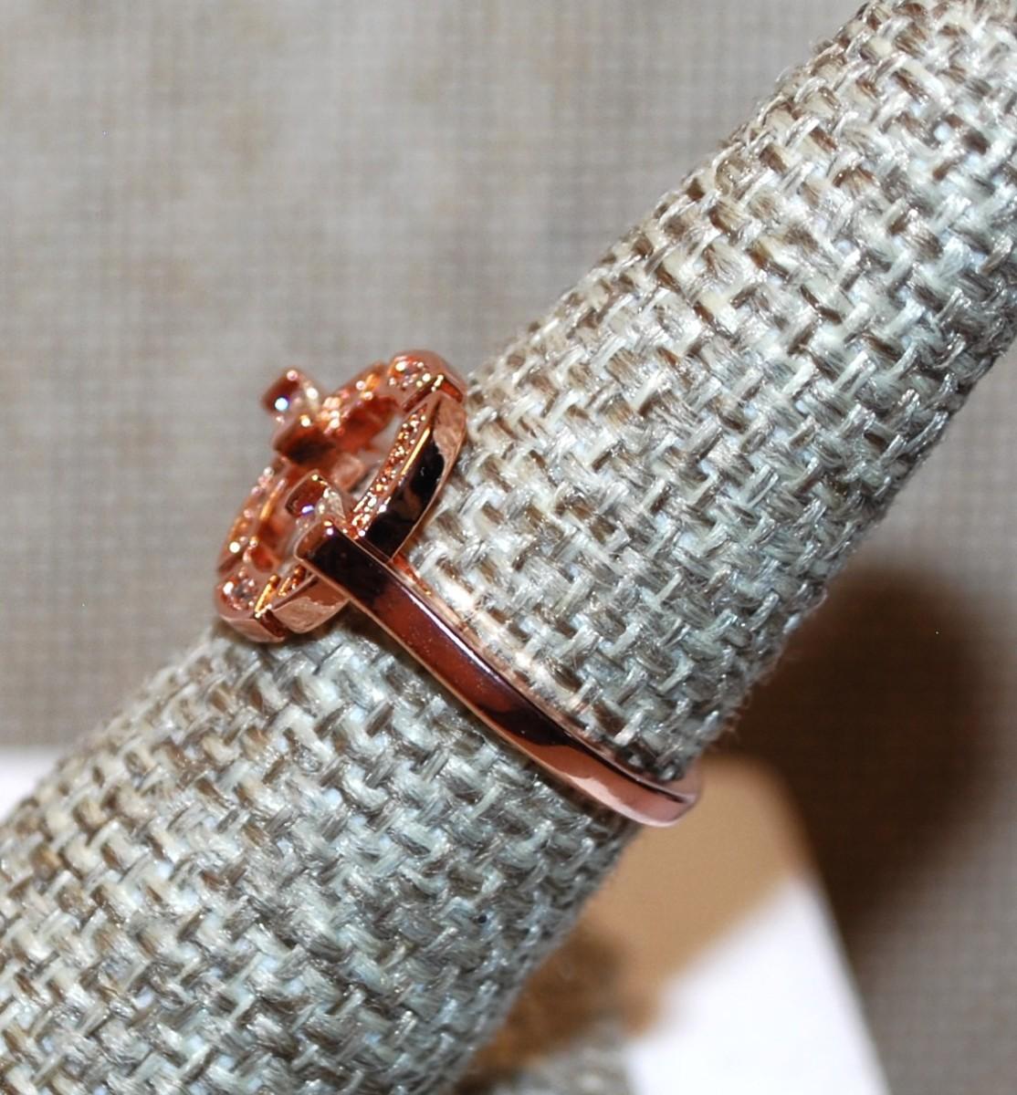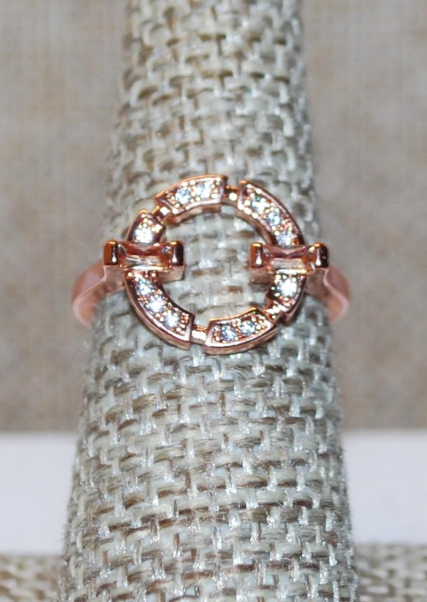 Size 6¼ Marked .925 Rose Gold Circle Design with Inlay Clear Stone Accents on a Silver Filled Band (2.5g)