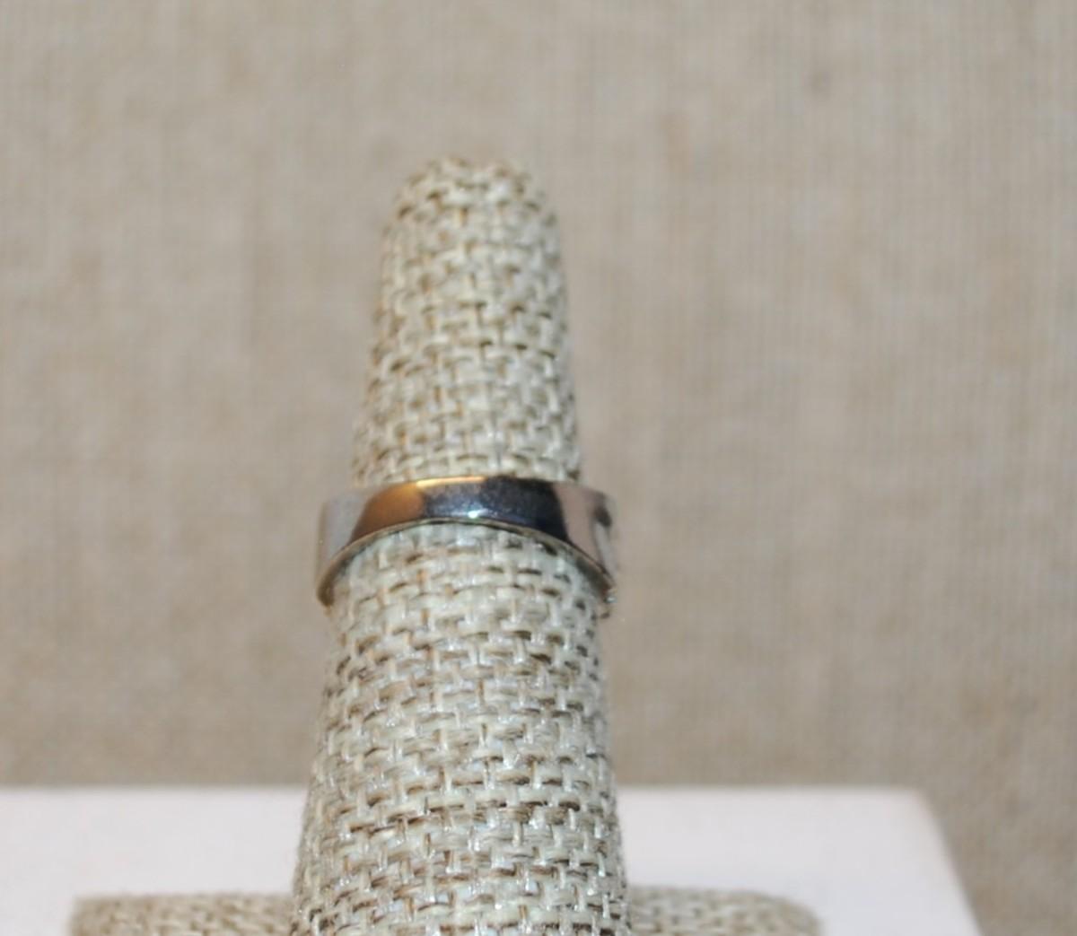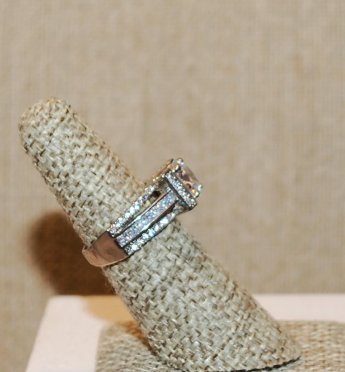 Size 6 Marked .925 Round Clear Main Stone Ring with Side Panels & Triple Stone Lines on a Silver Band (5.1g)