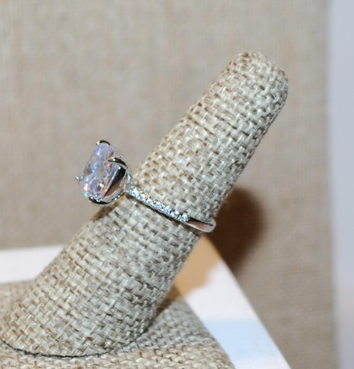 Size 6¼ Marked .925 Square Cushion Cut Clear Stone Ring with Tiny Side Stones Accents on a Silver Band (3.0g)