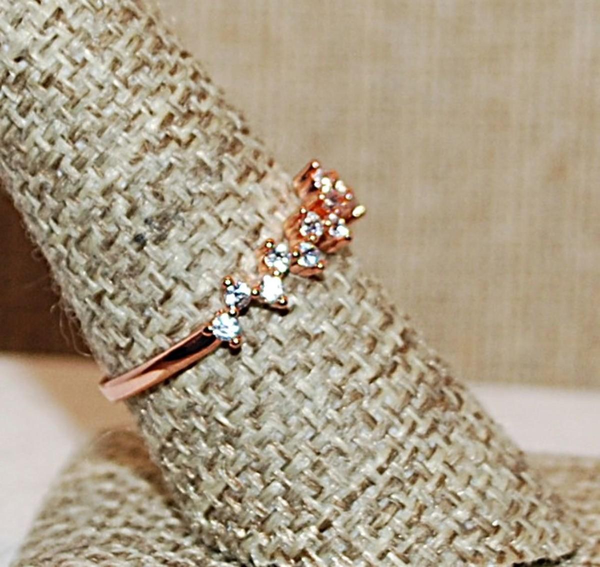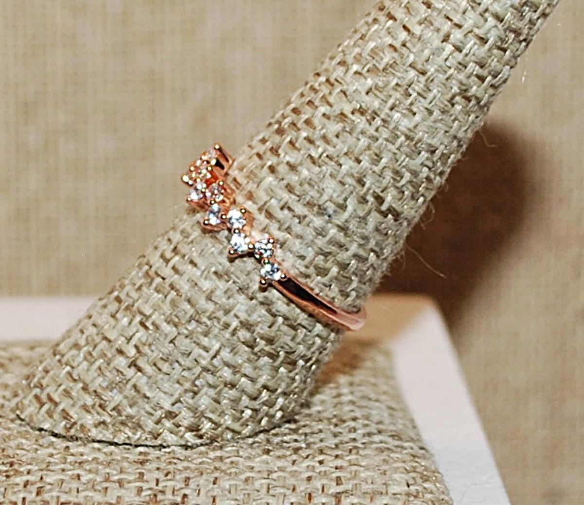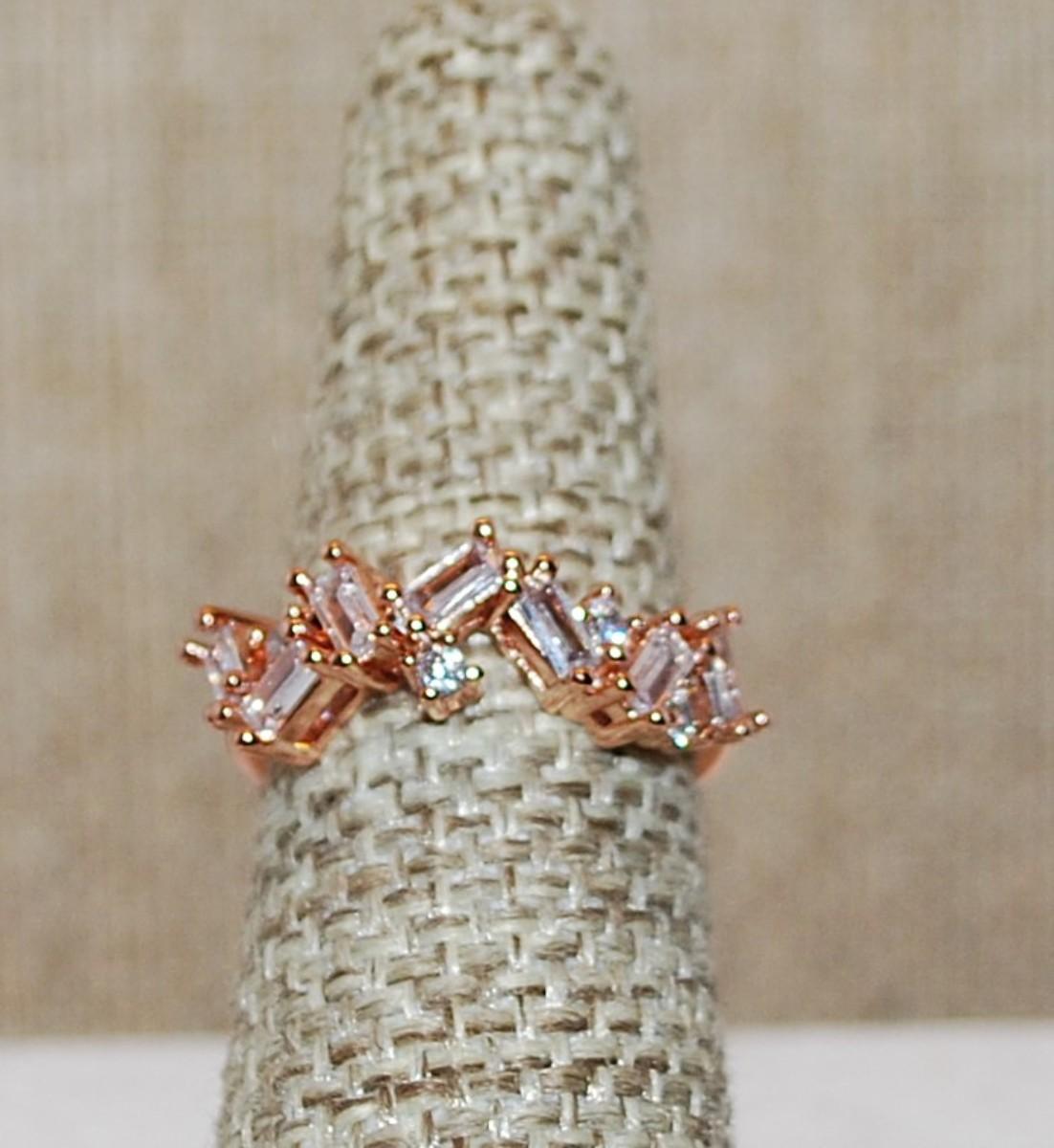 Size 6 ½ Marked .925 Staggered "Rectangles & Circles" Clear Stone Ring on a ROSE GOLD Band (2.9g)
