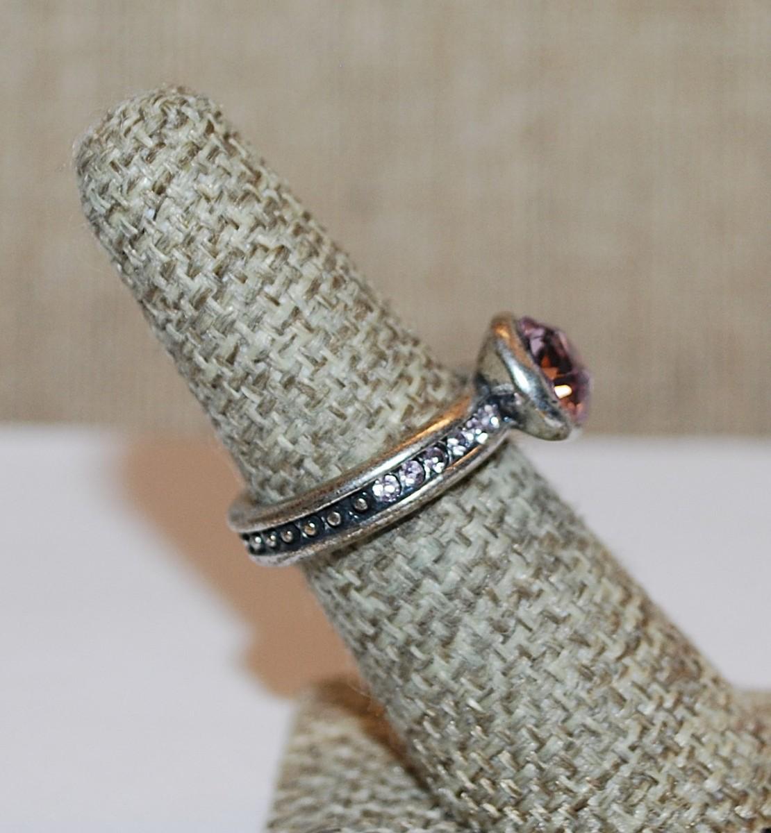 Size 6 Marked "AMANDA ALEC" - Vintage Light PURPLE Beveled Glass Stone RING with Pink Stones on Silver Tone Band (5.0g)