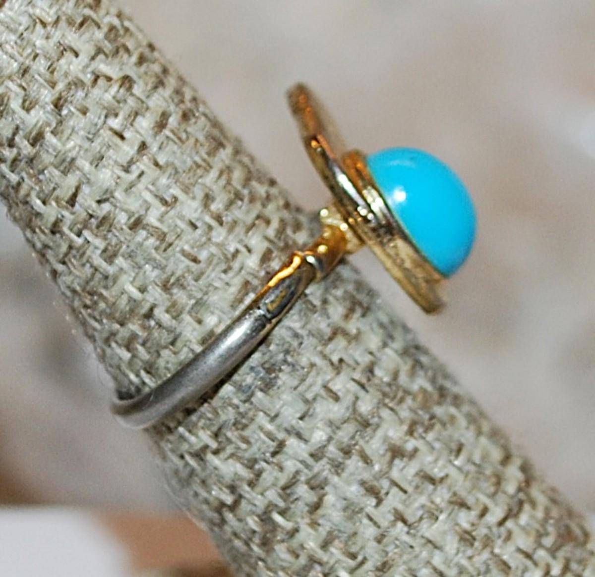 Size 6½ Oval Blue Cabochon Ring with "Flag" on a Silver Tone SPLIT Band (3.8g)