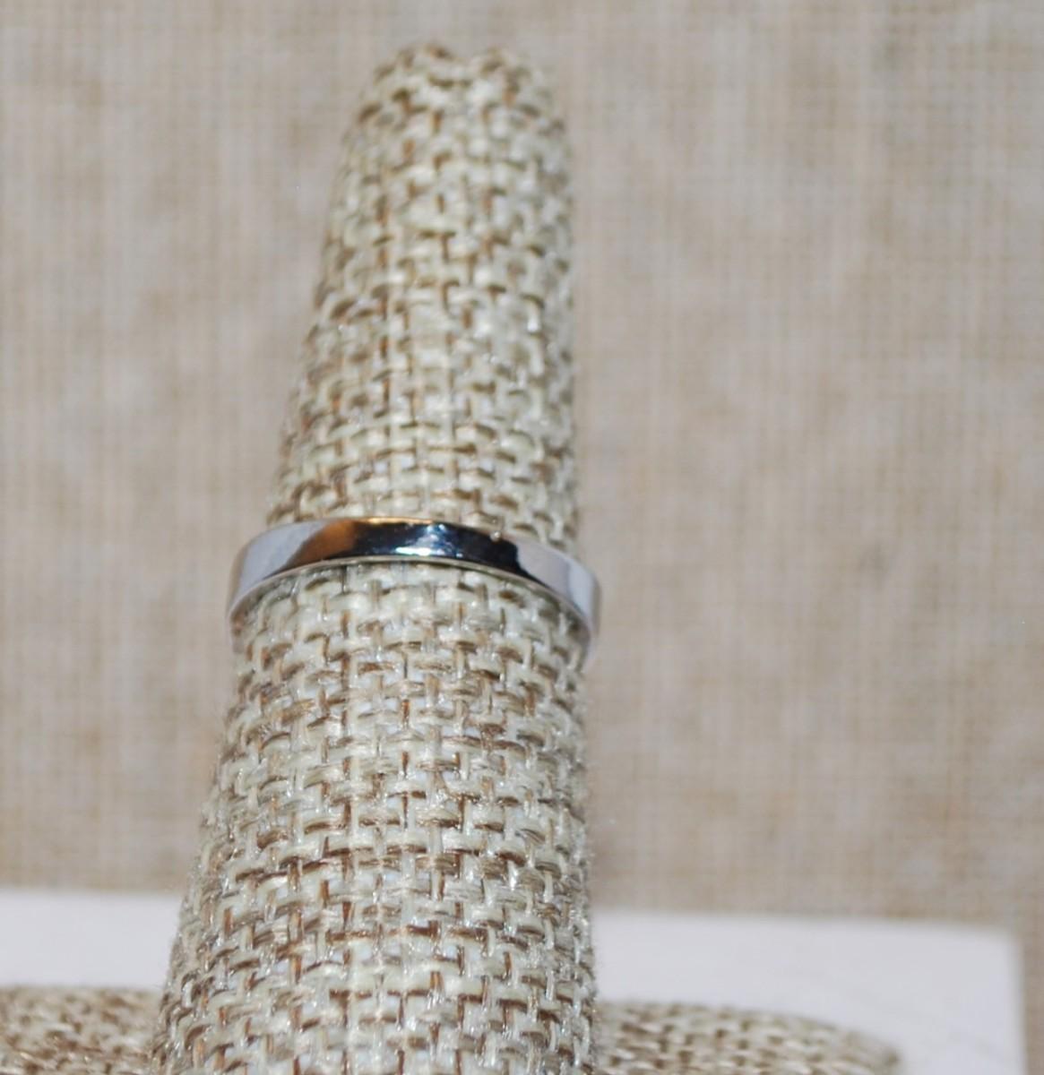 Size 6¾ Oval White Opal with Swirl Side Accents on a Silver Tone Band (3.1g)