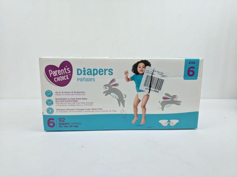 Size 6, Parents Choice, 92 ct, 35+lbs - New