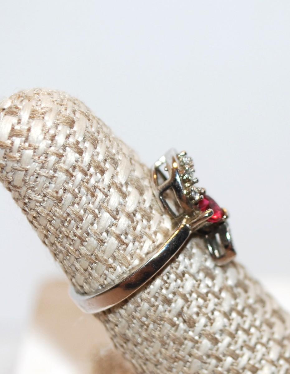 Size 6½ Red Heart Shaped Stone Ring with 11 Accents Stones on a Slurry Shaped Band (2.6g)