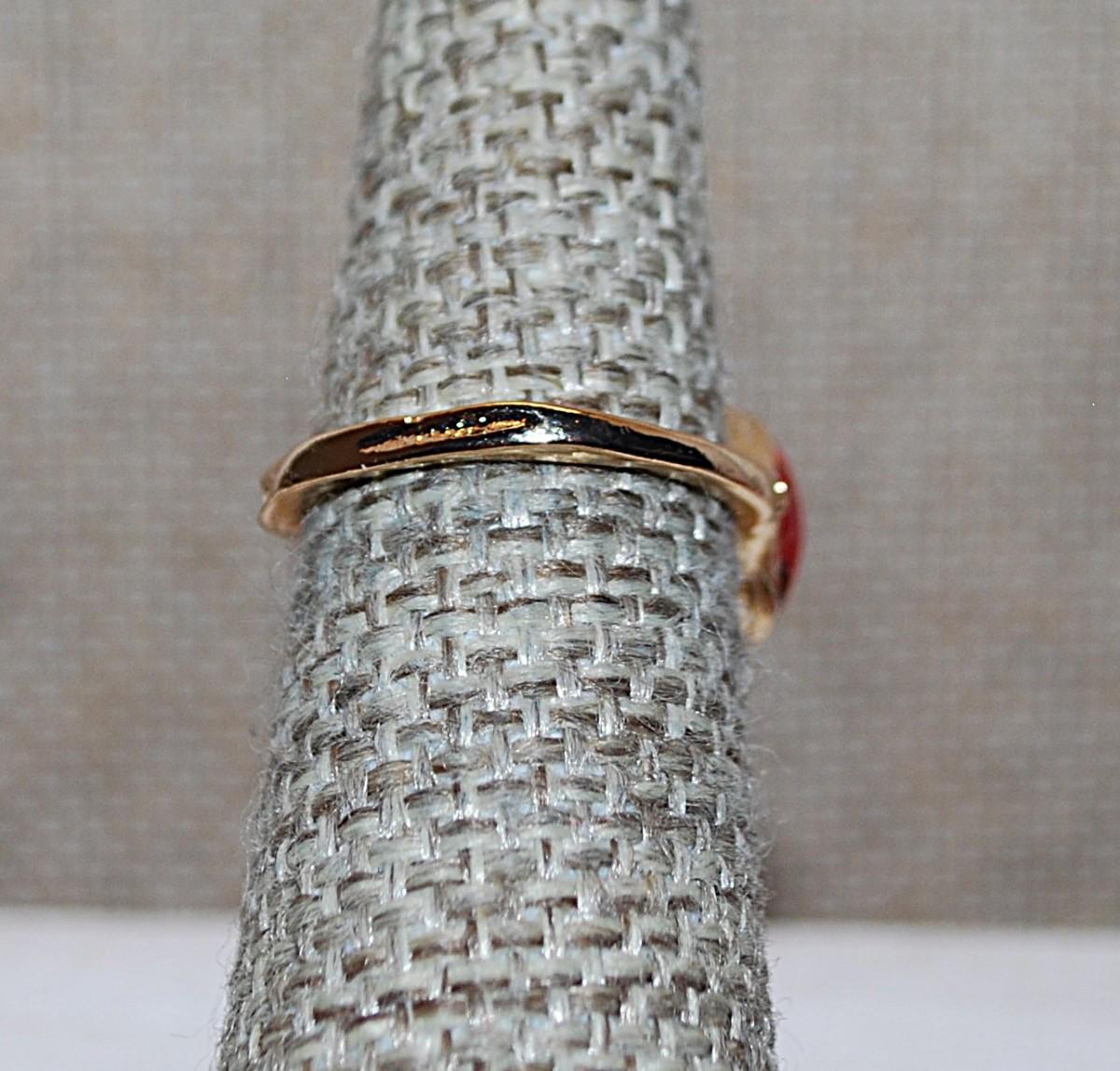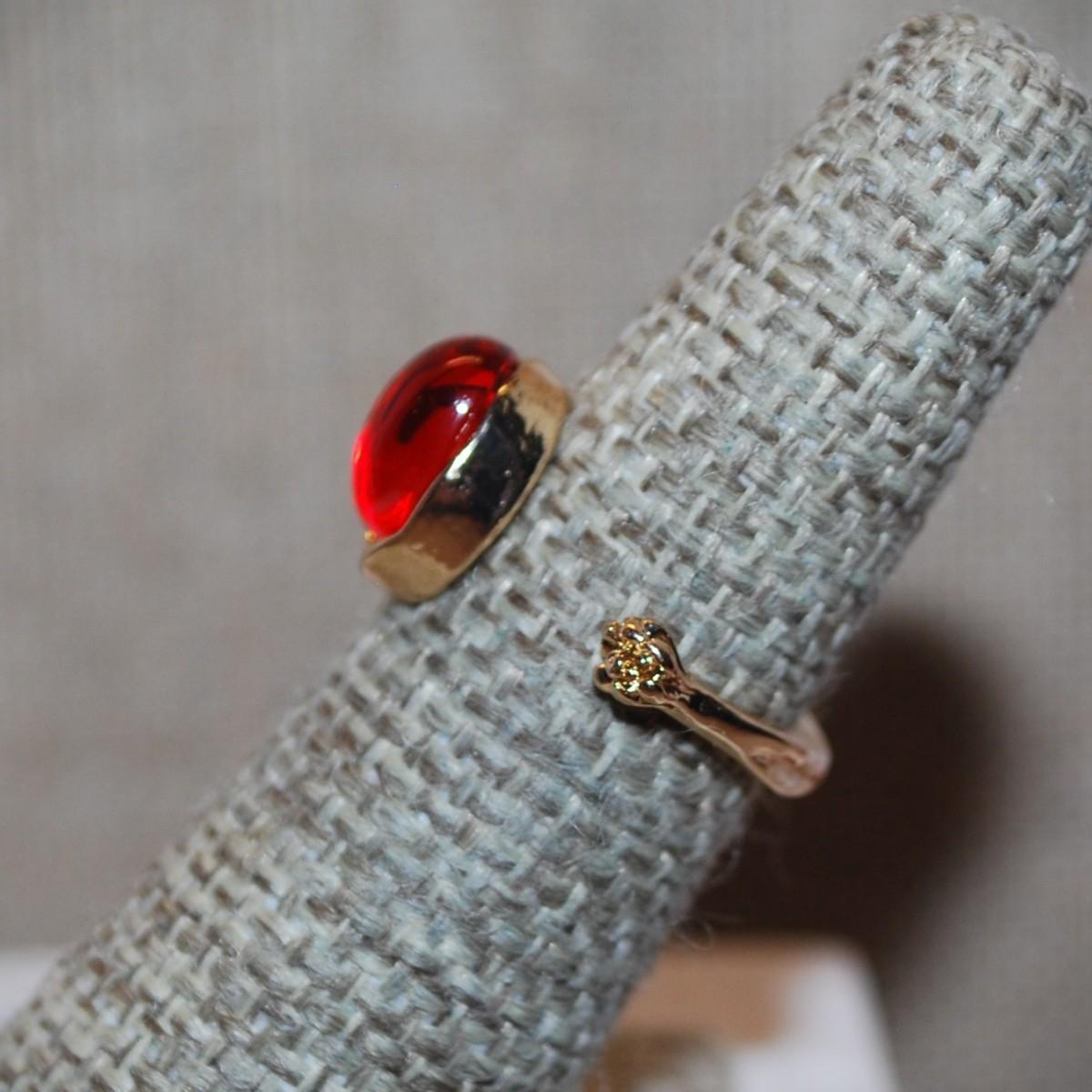 Size 6 RED Oval Glass Stone RING with Side "Paw" on a Gold Tone FRONT OPEN-ENDED Band (2.6g)