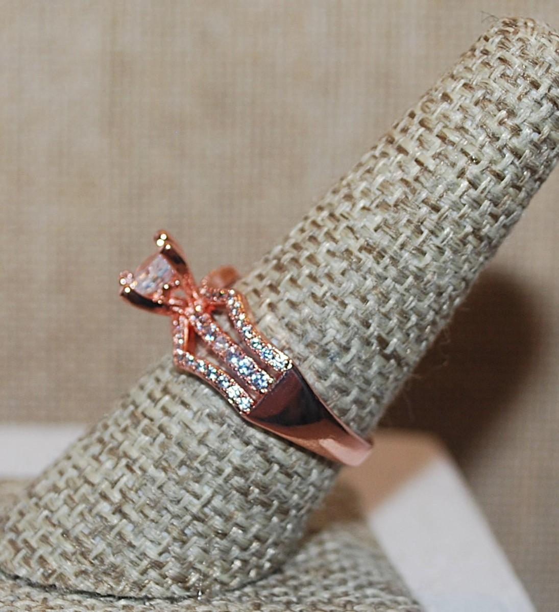 Size 6½ Rose Gold Square Main Stone Ring with 3 Rows of Side Accents on a Rose Gold Tone Band (3.9g)