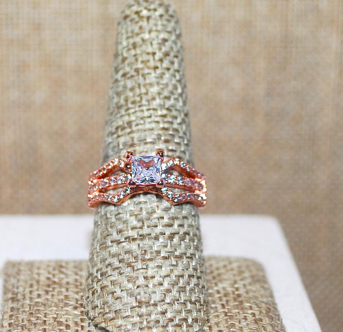 Size 6½ Rose Gold Square Main Stone Ring with 3 Rows of Side Accents on a Rose Gold Tone Band (3.9g)