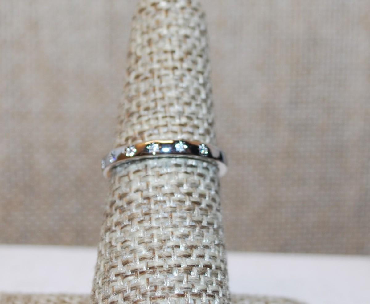 Size 6 Silver Tone Band ½ Infinity Style Ring with 6 Small Clear Stones (1.6g)