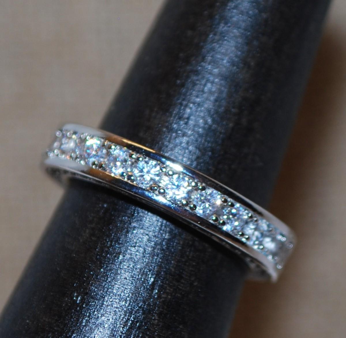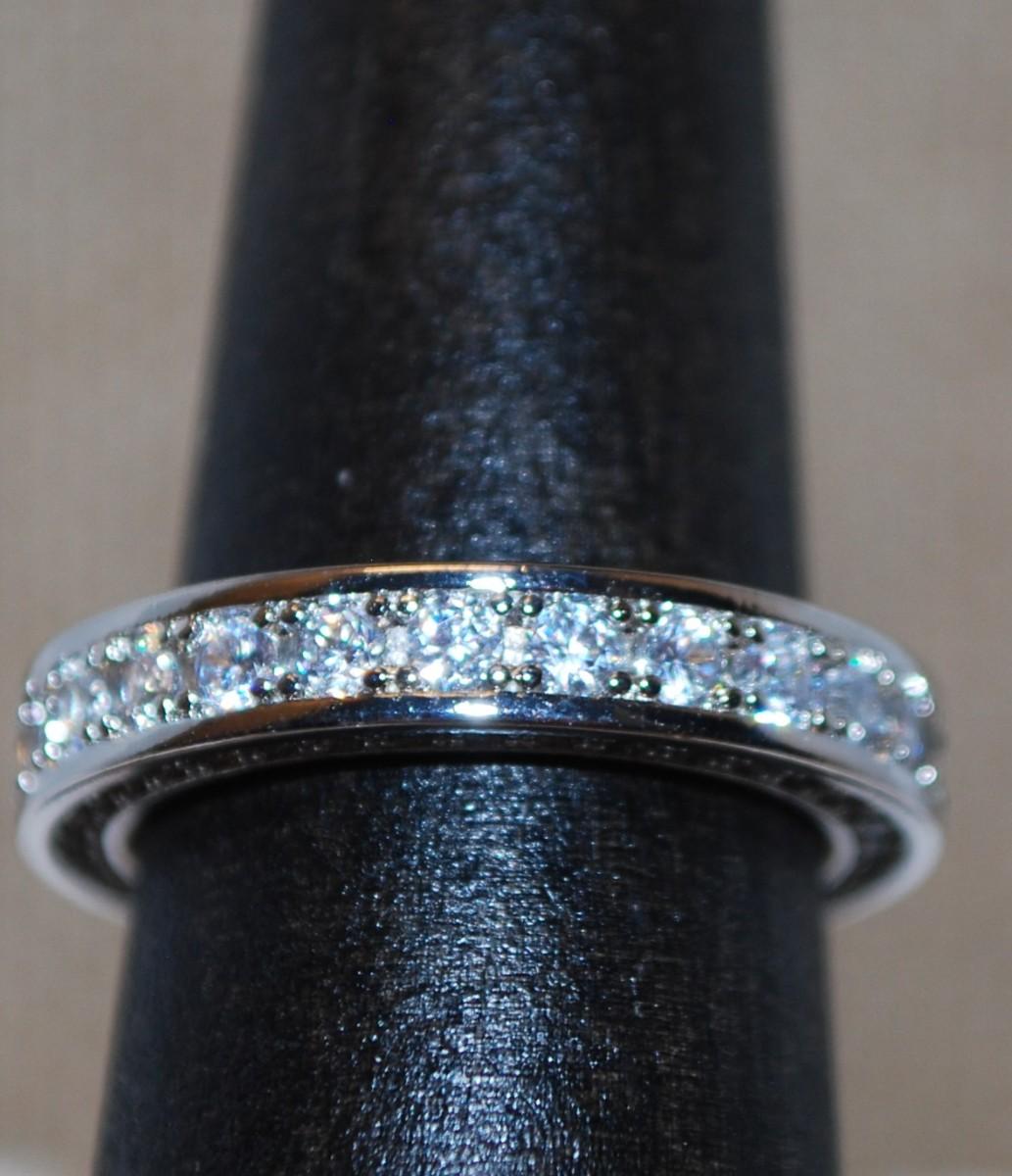 Size 6 Silver Tone Bordered Sides Eternity Style Ring (4.1g)