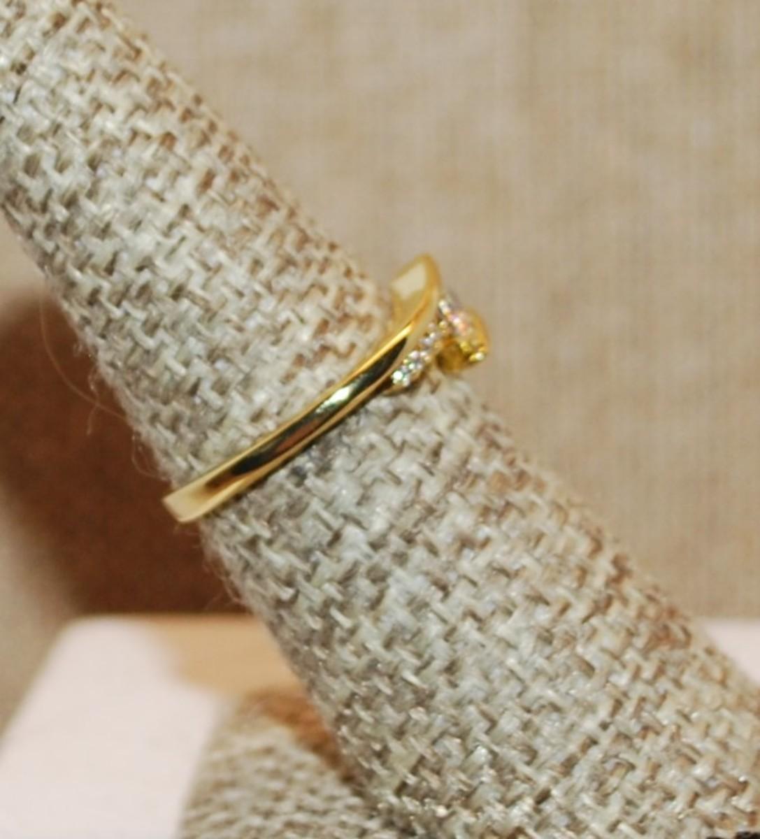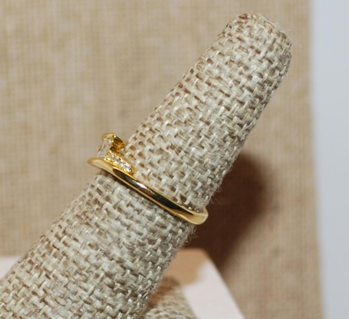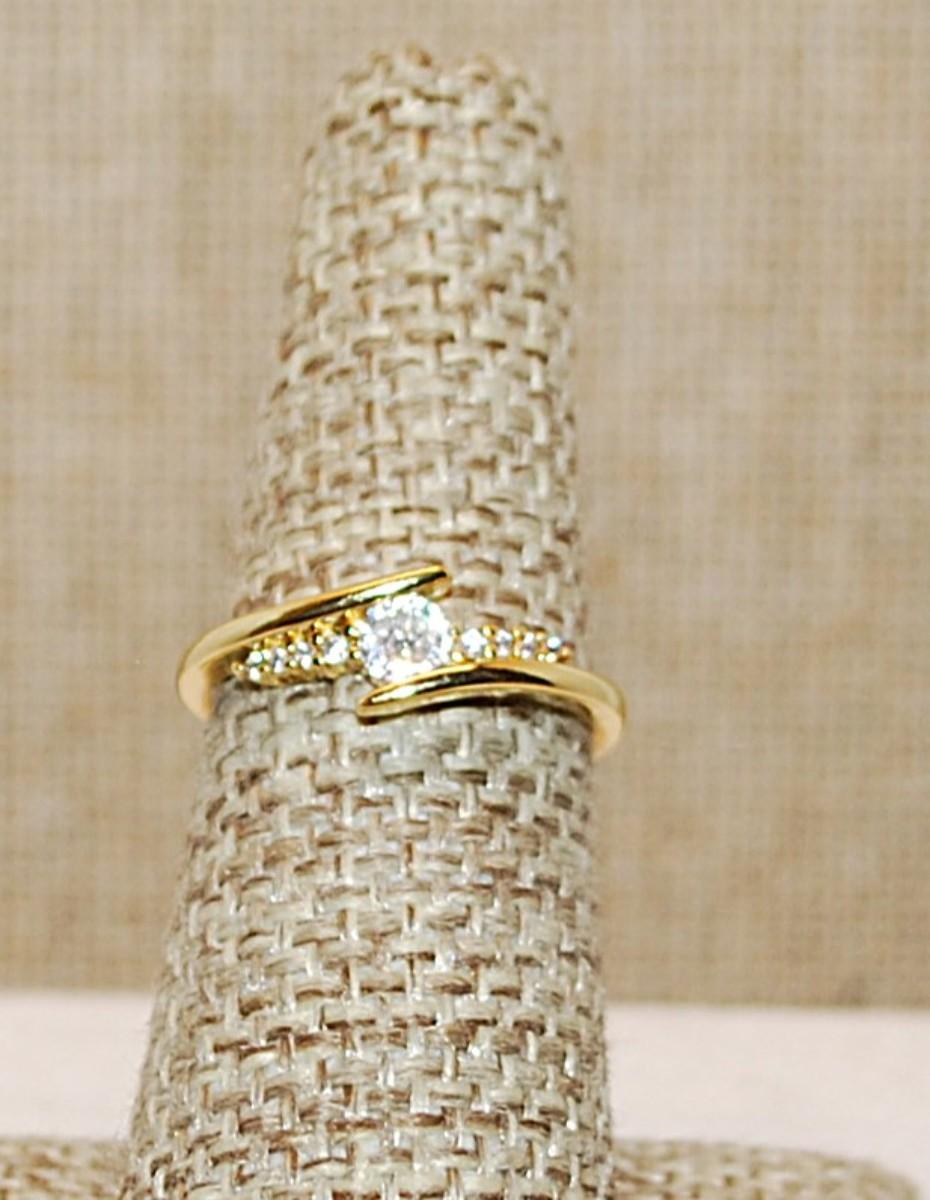 Size 6 ¼ Single Round Clear Main Stone with Side Accents on an Overlap Style Gold Tone Band (2.0g)