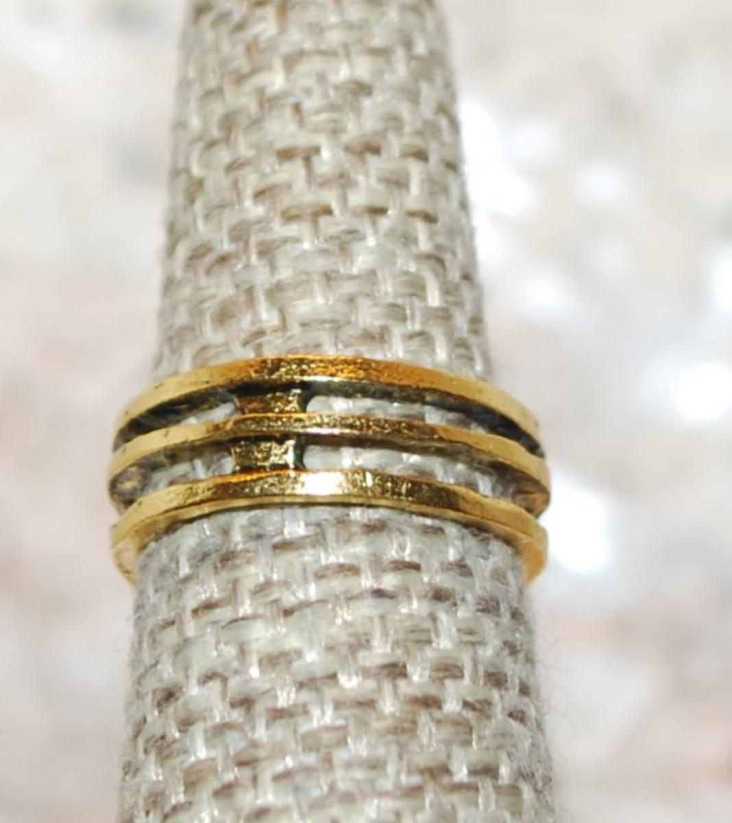 Size 6 TOE RING with "Triple Rows" on a Gold Tone OPEN BAND (1.9g)