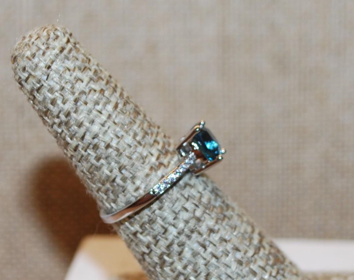 Size 6¾ Transparent Blue Stone Asscher Cut 4 Prong with Side Accents on a Silver Tone Band (1.4g)