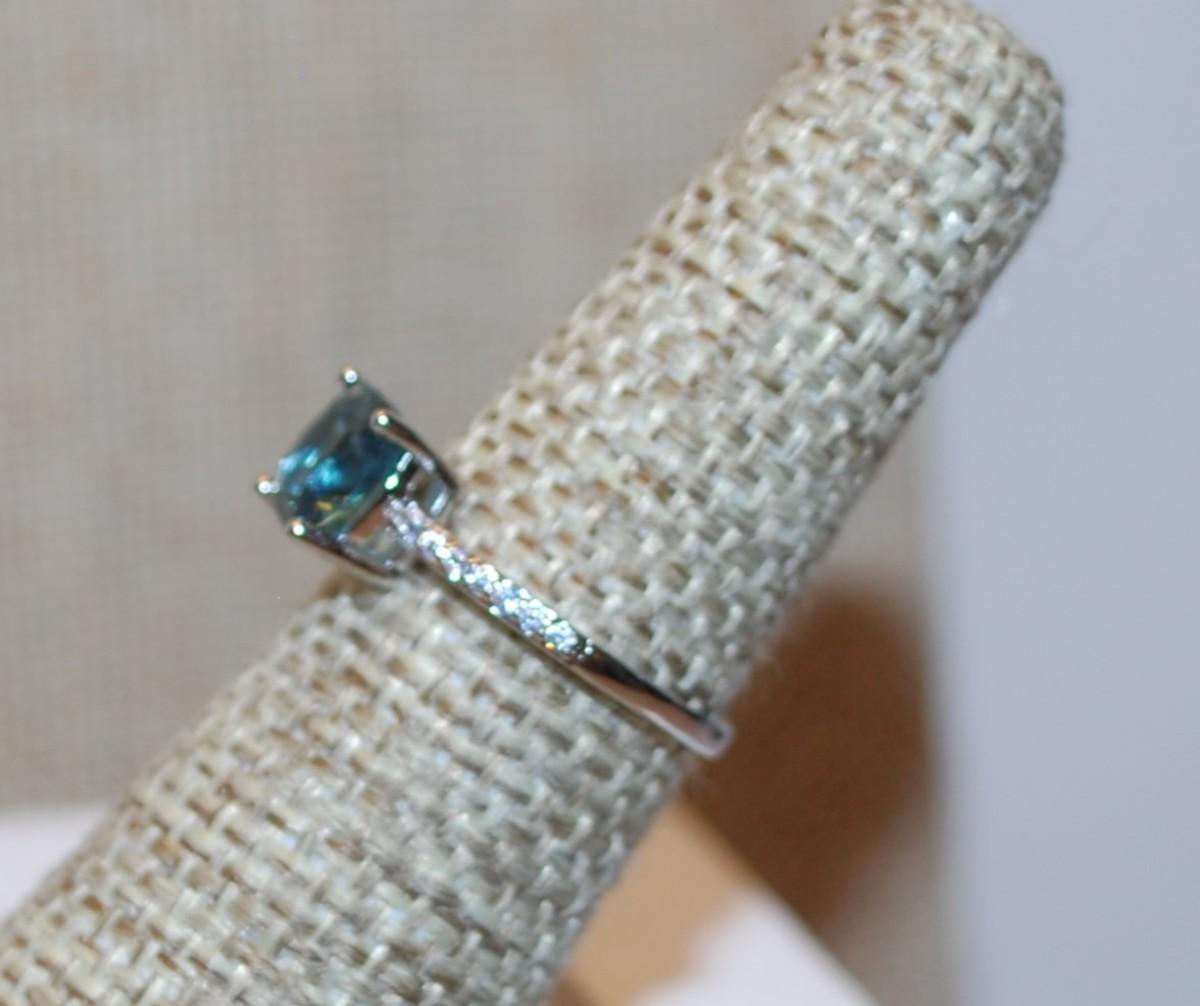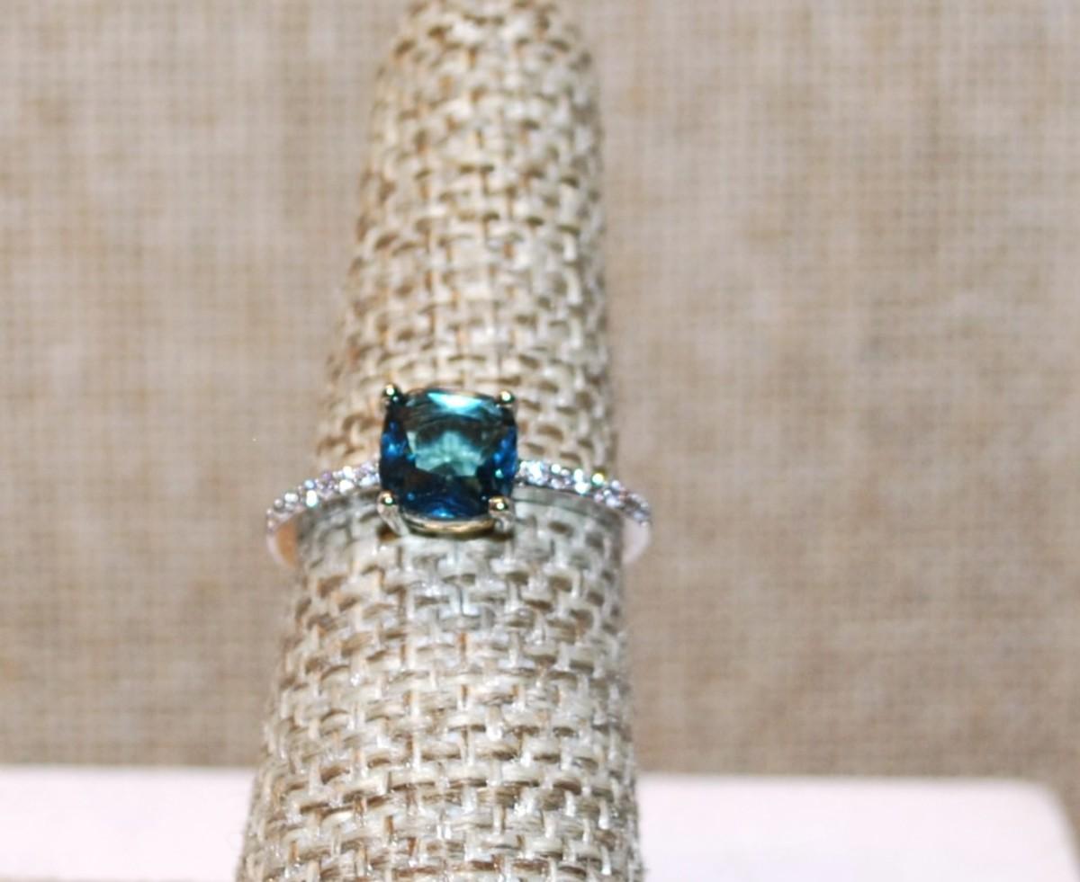 Size 6¾ Transparent Blue Stone Asscher Cut 4 Prong with Side Accents on a Silver Tone Band (1.4g)