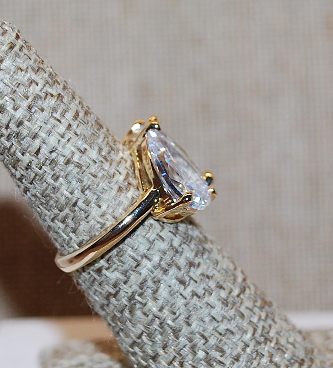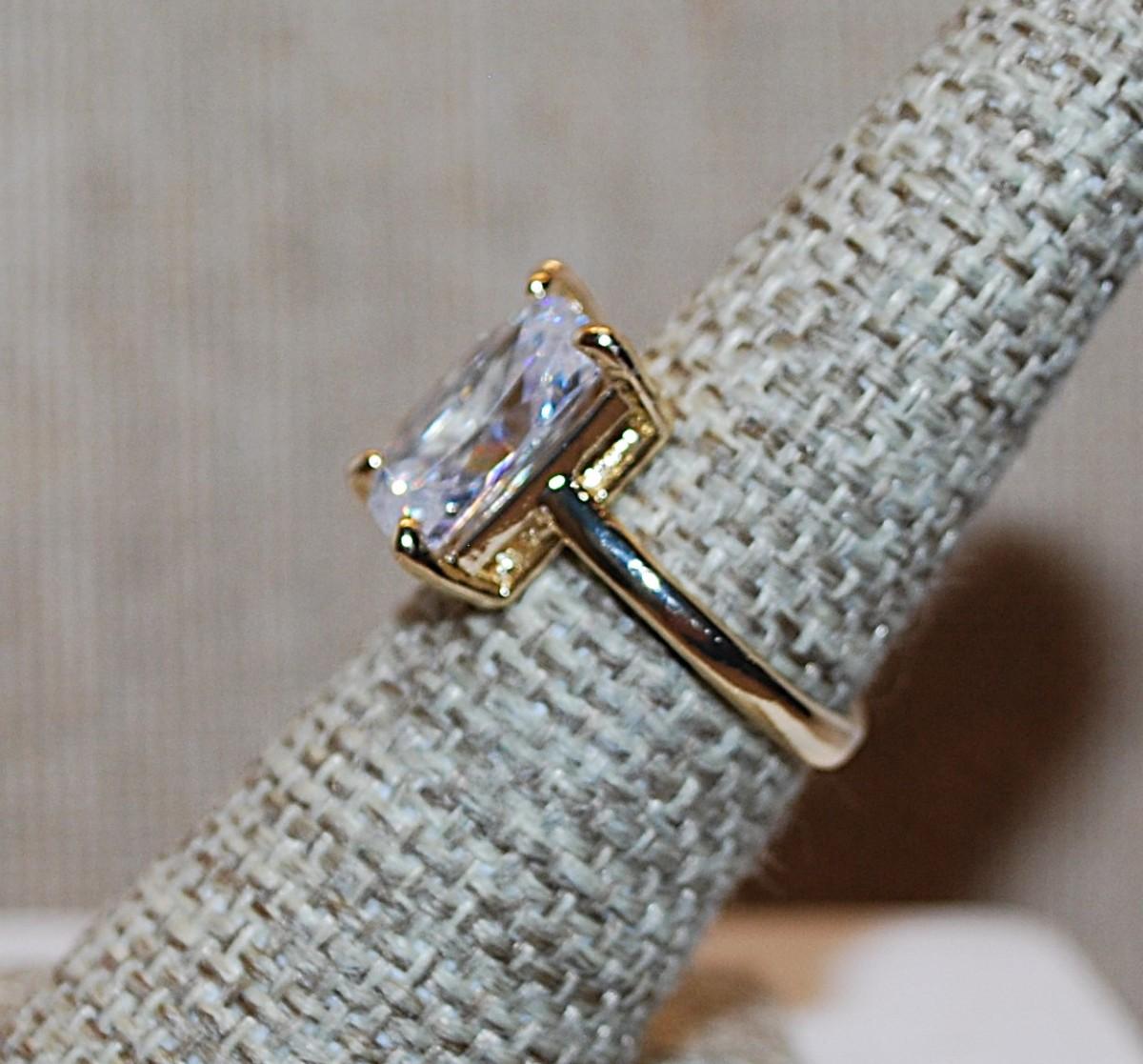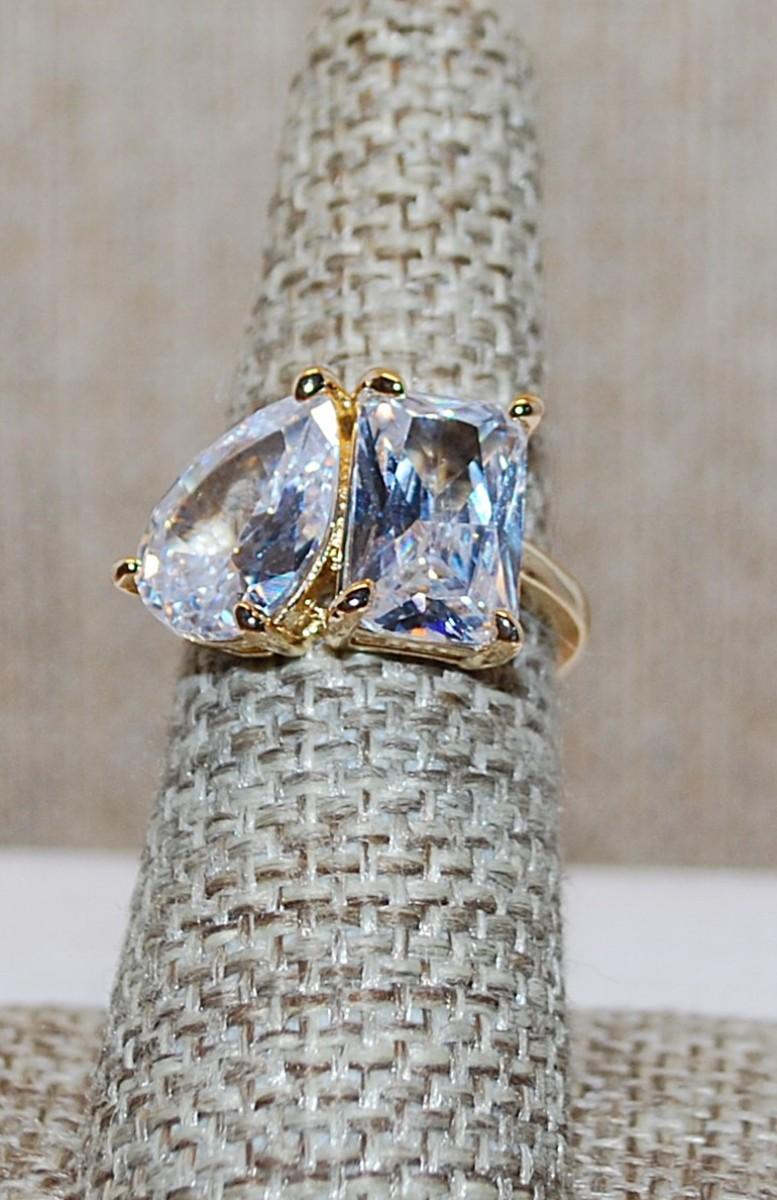 Size 6½ Unique Large 2-Stones Marquise Cut & Rectangle Cut Ring on a Gold Tone Band (5.8g)