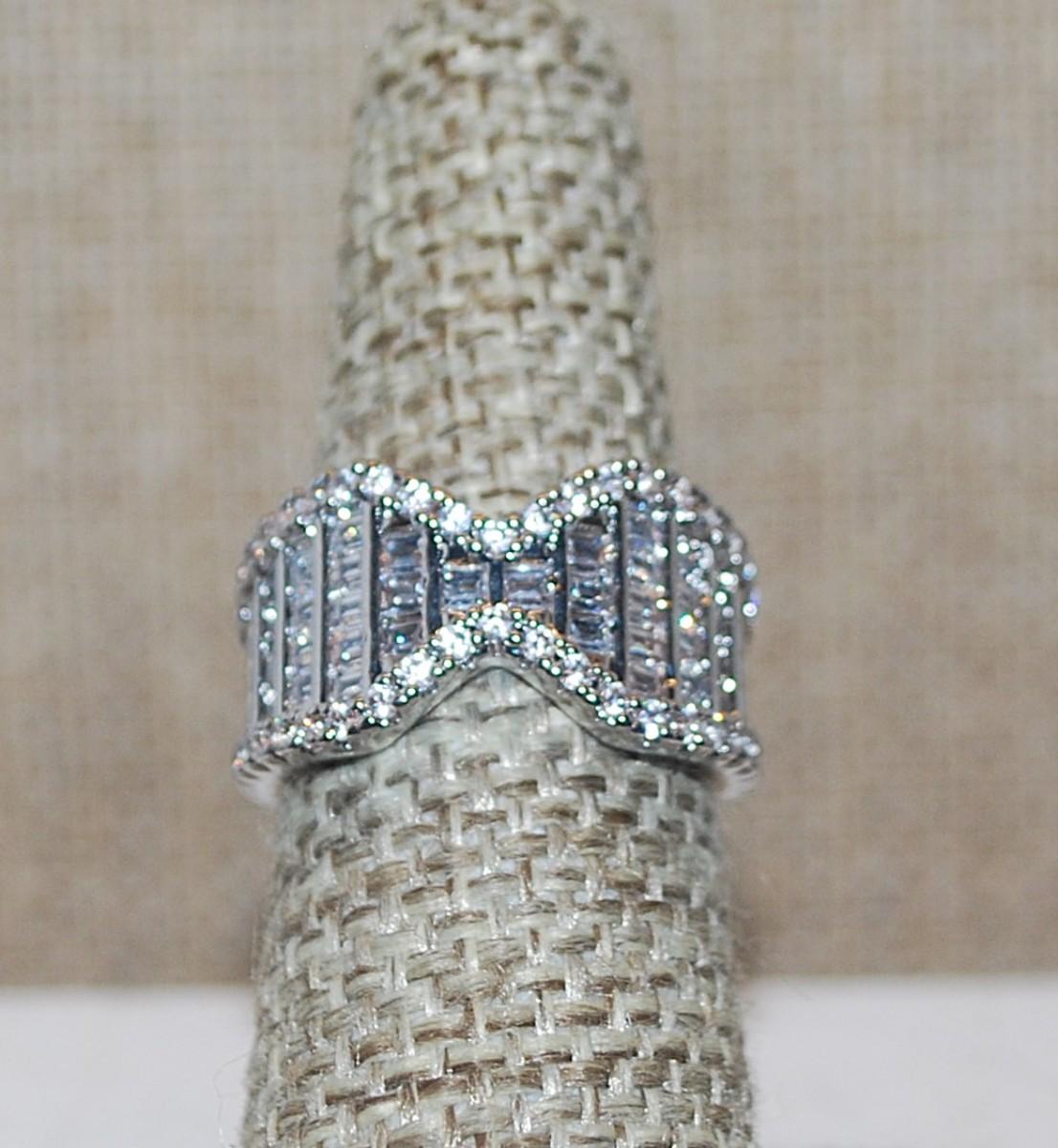 Size 6½ Vertical Clear Stone "Segments" Ring on a Silver Tone Band (7.3g)
