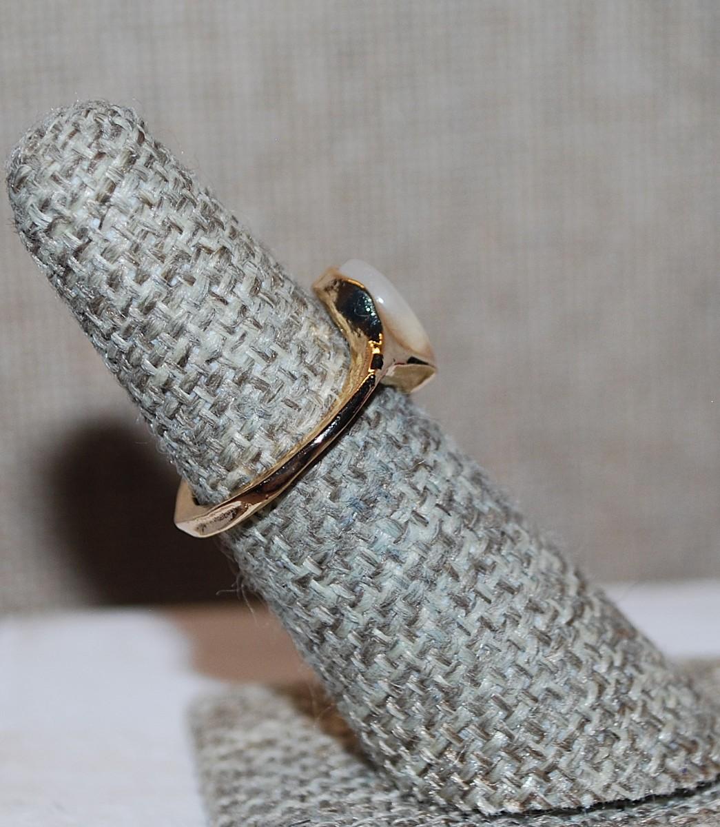 Size 6 White Opaque Oval Stone RING with Side "Paw" & Gold Tone FRONT OPEN-ENDED Band (2.3g)