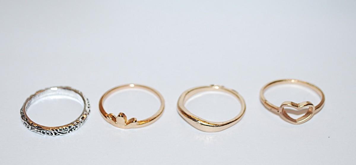 Size 6-6½ Collection of 4 RINGS - 1 Silver Tone, Rough Cut Band; 3 Gold Tone, Heart, Flower & Simple (4.6g)