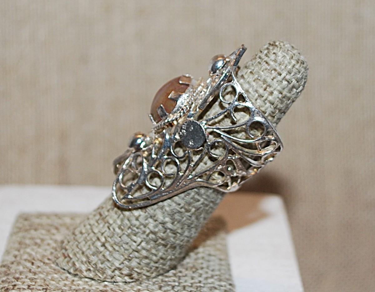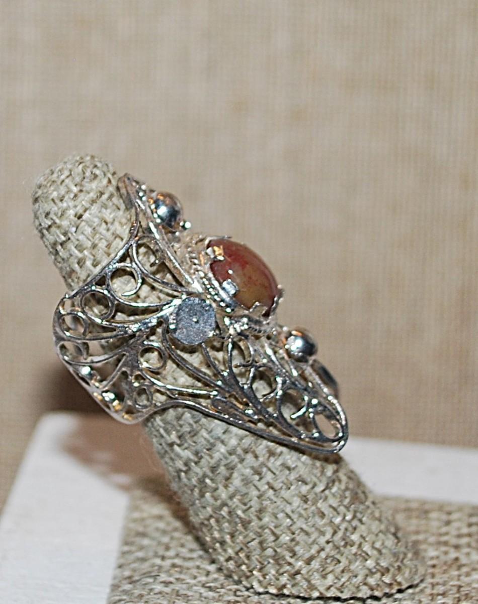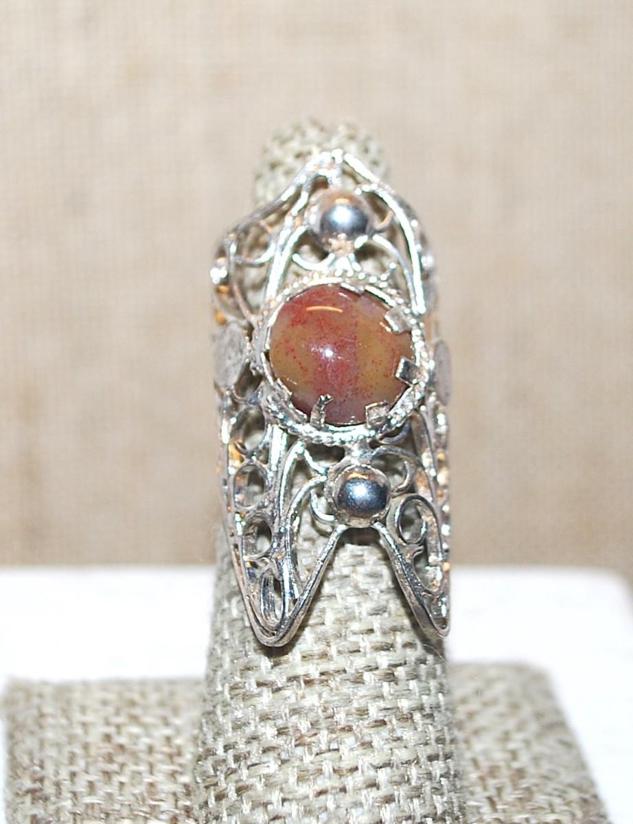 Size 6-7 Red & Brown Filagree-Style CABOCHON RING with an Adjustable OPEN-END Silver Tone Setting