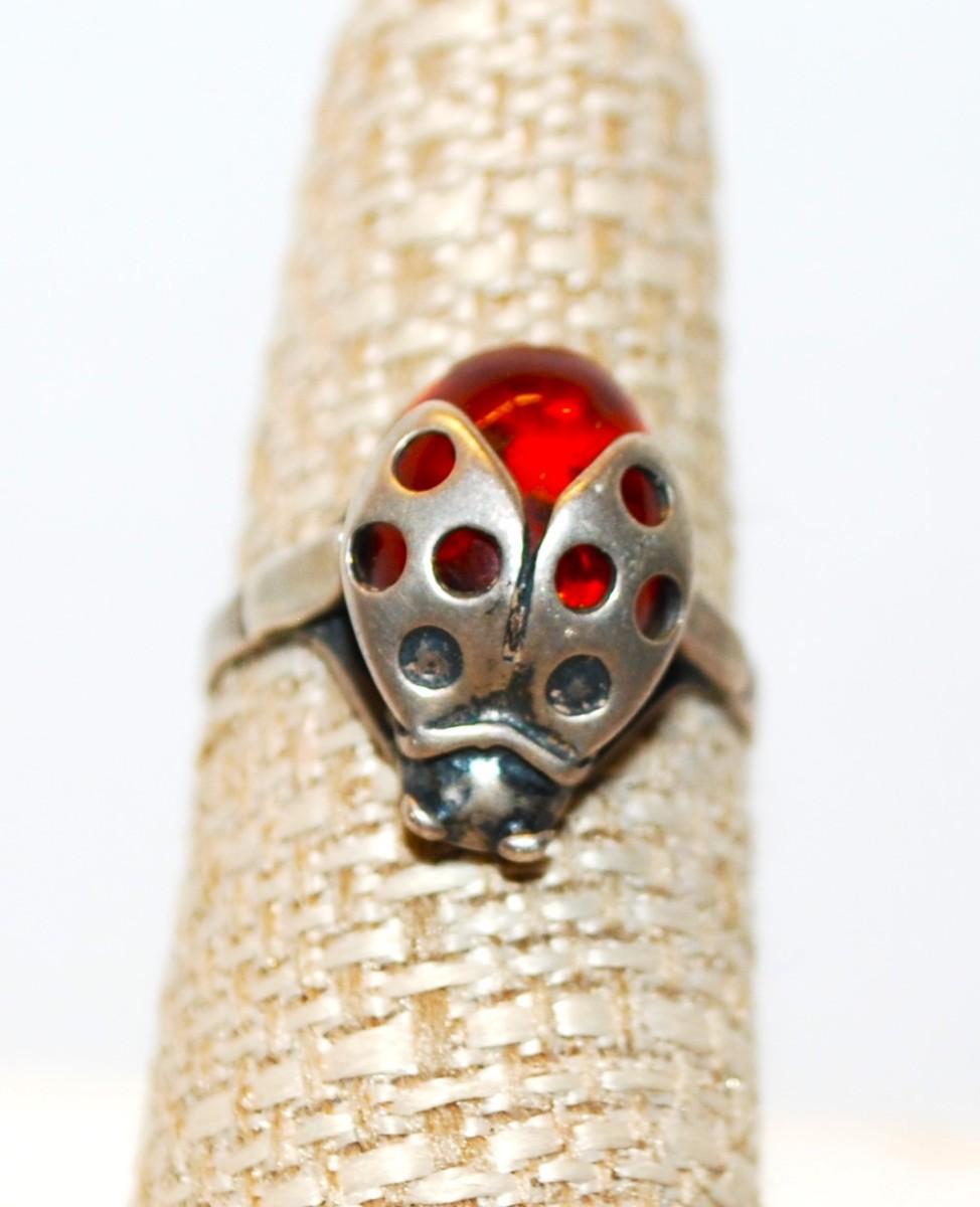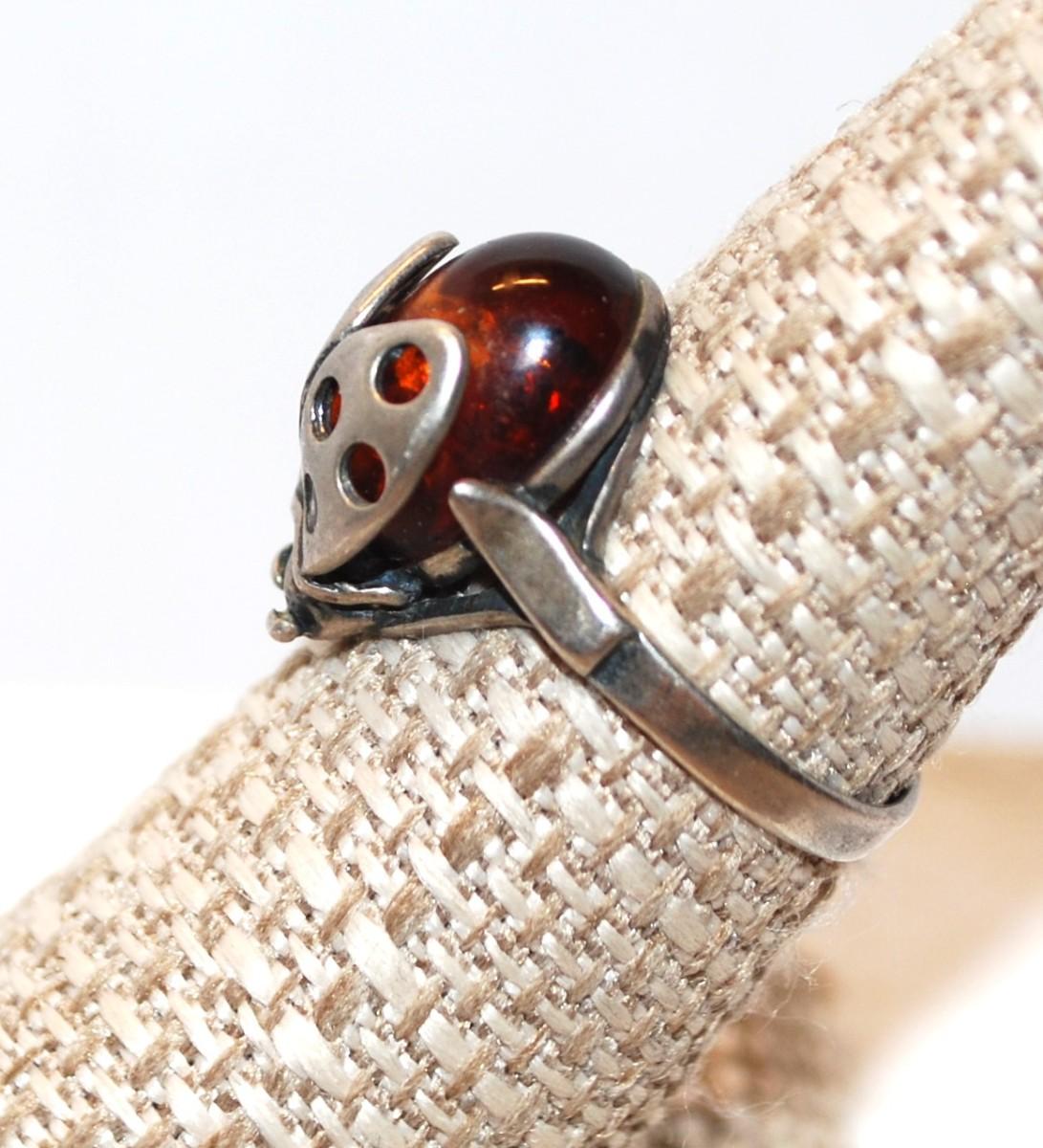 Size 7 ¼ Unique Insect Ring with Amber Stone (3.5g)