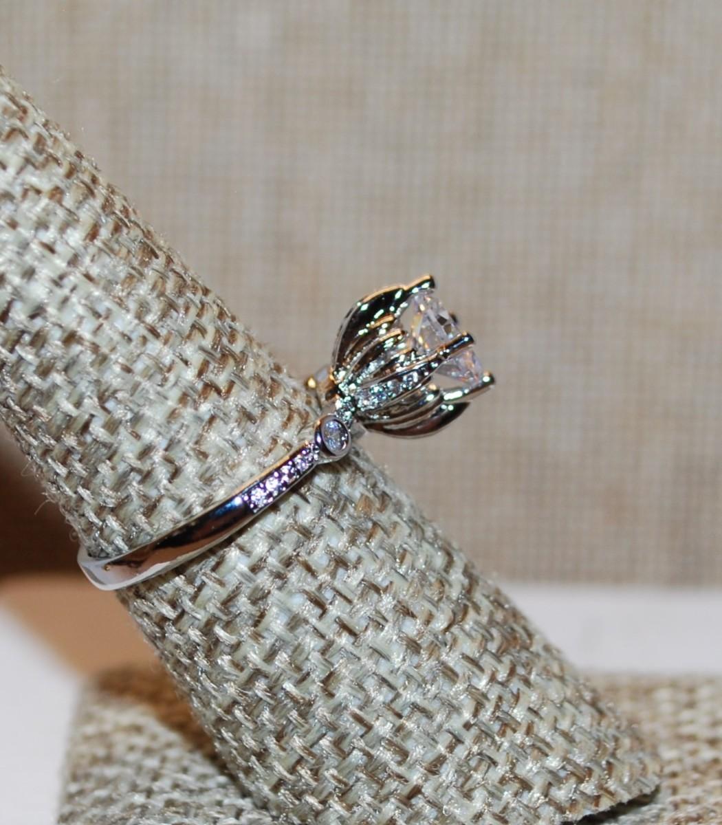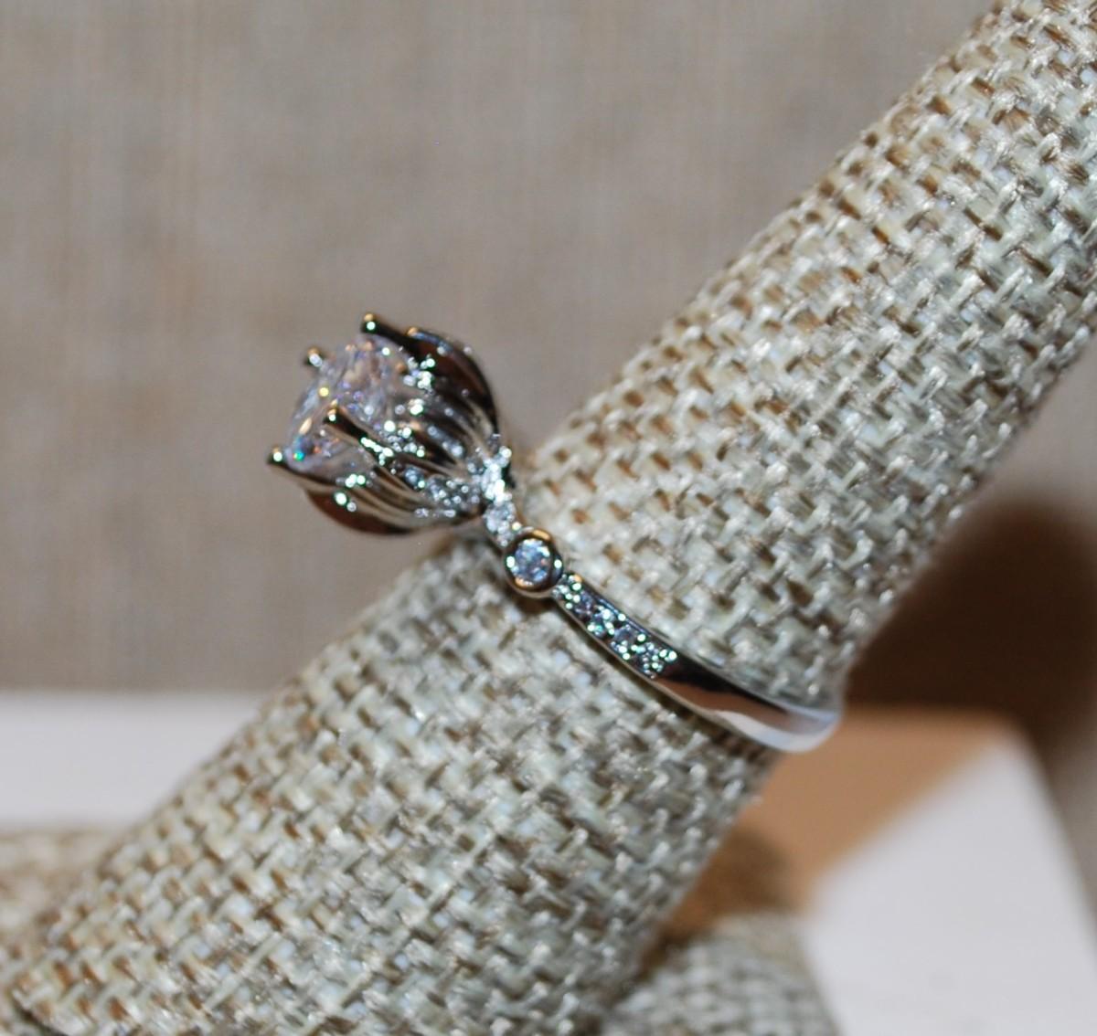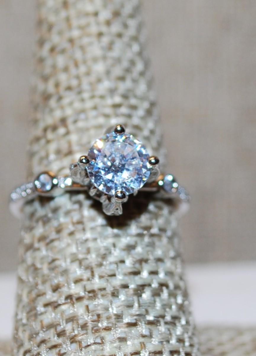 Size 7¼ 4 Prong High Set Single Clear Stone Ring with Side Accents on a .925 Silver Band (3.3g)