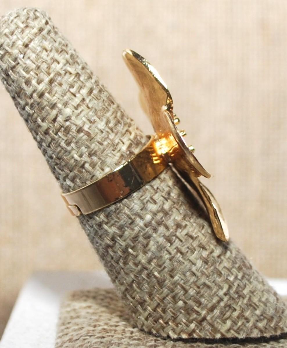 Size 7 ALL Gold Colored "5 Petal Flower" Ring on an OPEN BAND (4.7g)