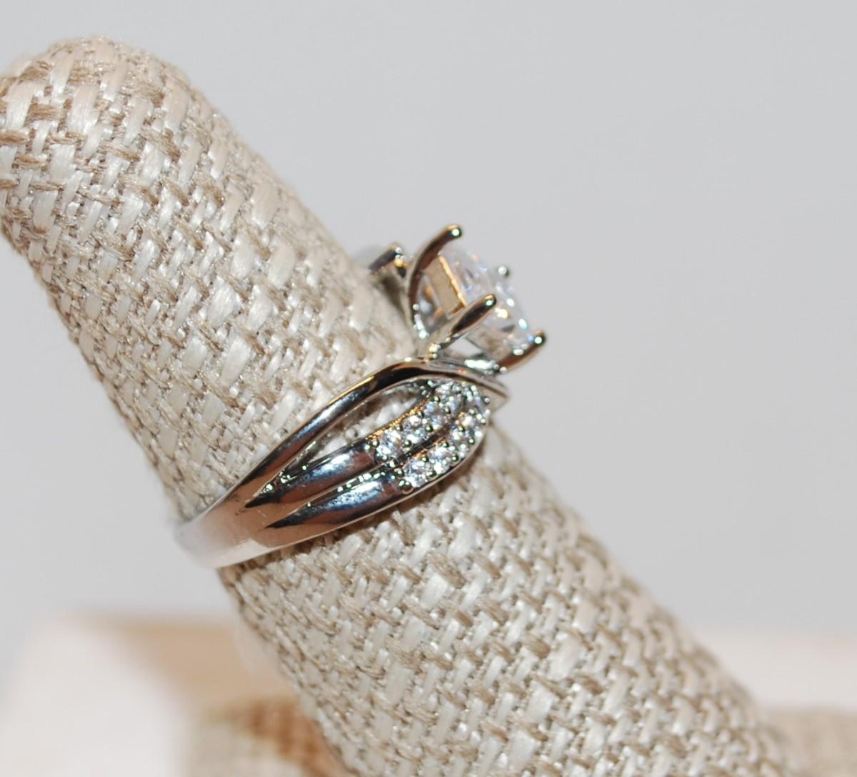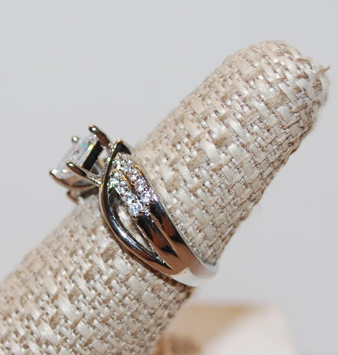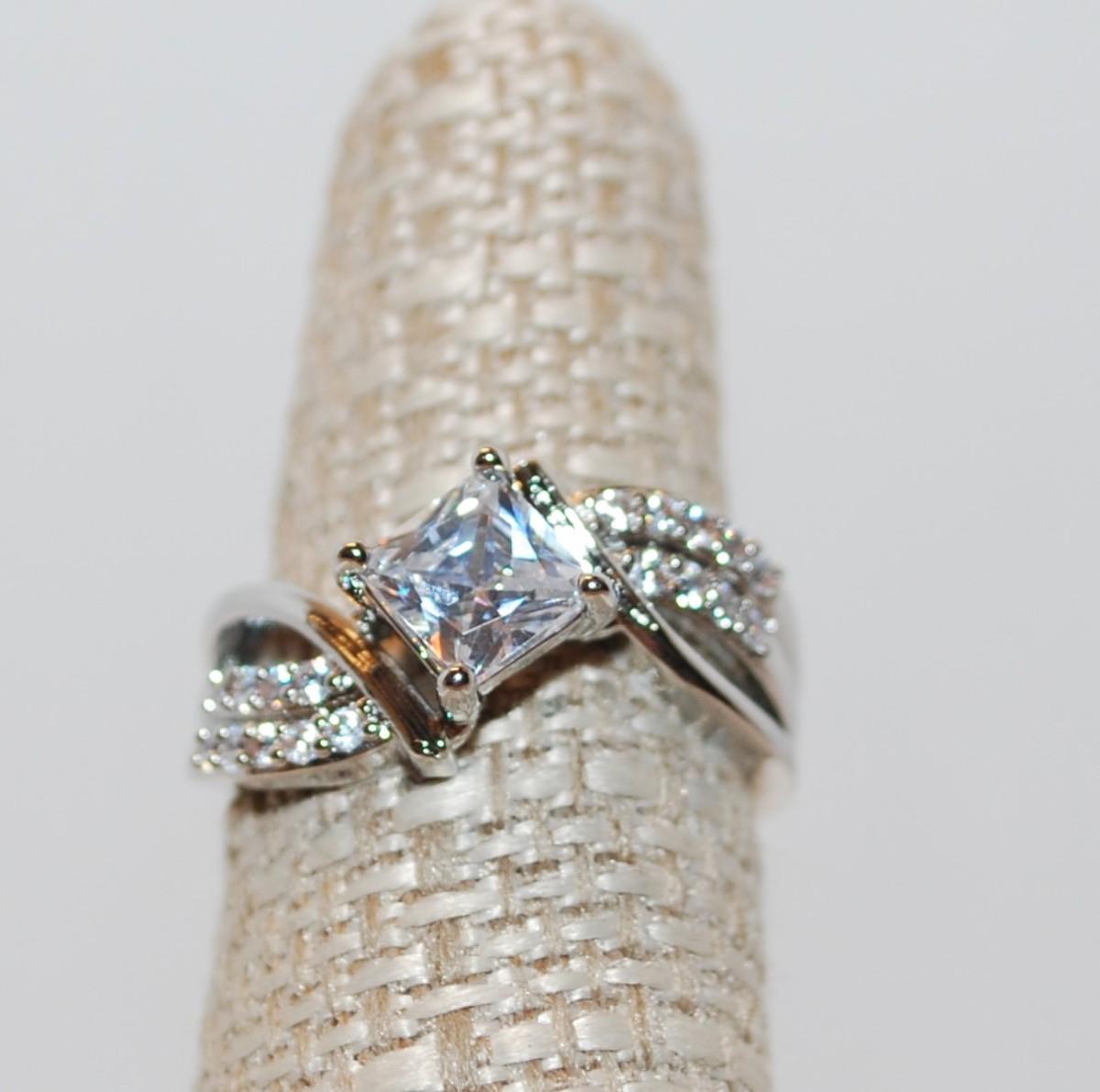 Size 7 ½ Angled Princess Cut Clear Center Stone with Double Accent Stone Bands .925 (4.6g)