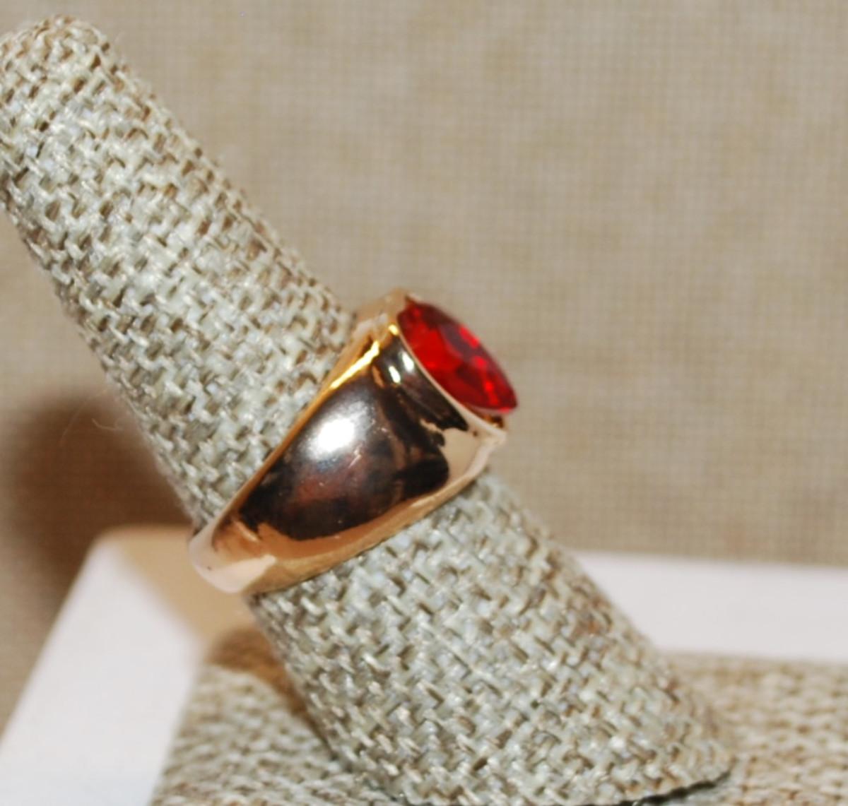Size 7¾ Beautiful Large Red Heart Stone Ring on a Solid Gold Tone Band (6.3g)