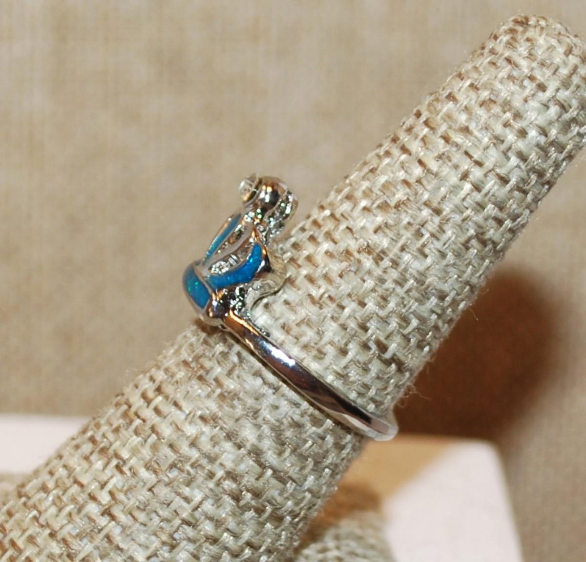 Size 7½ Blue CROWN Enamel Ring with a Single Round Stone Top on a Silver Tone Band (3.7g)