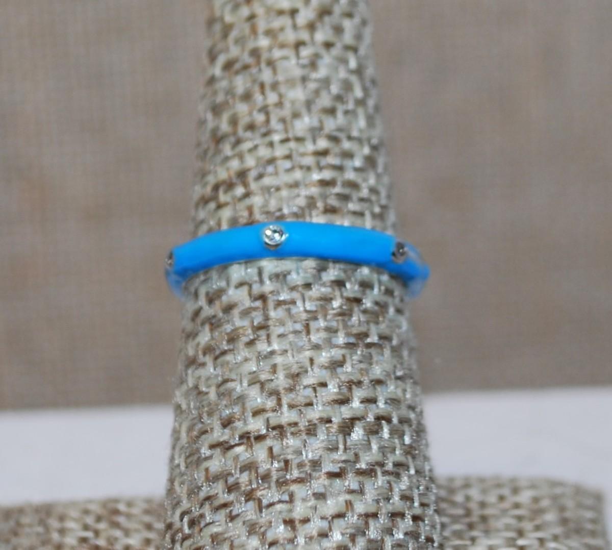 Size 7 BLUE Enamel Ring with 6 Rhinestones Around the Band (2.2g)
