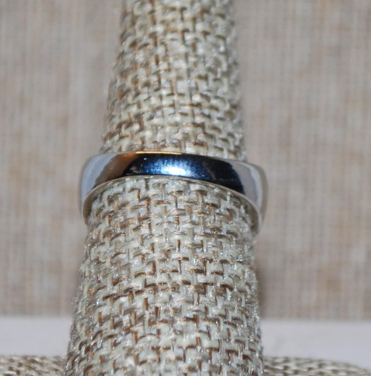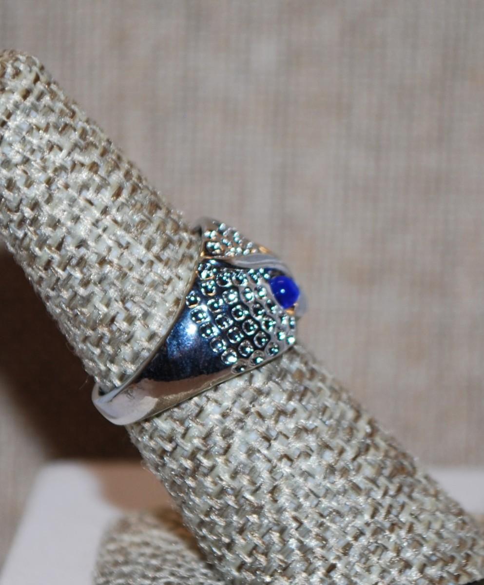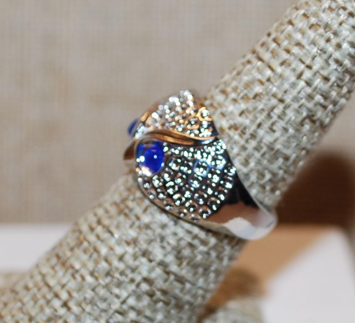 Size 7¼ Blue Eyed Owl Ring on a Shimmering Silver Tone Band (5.0g)
