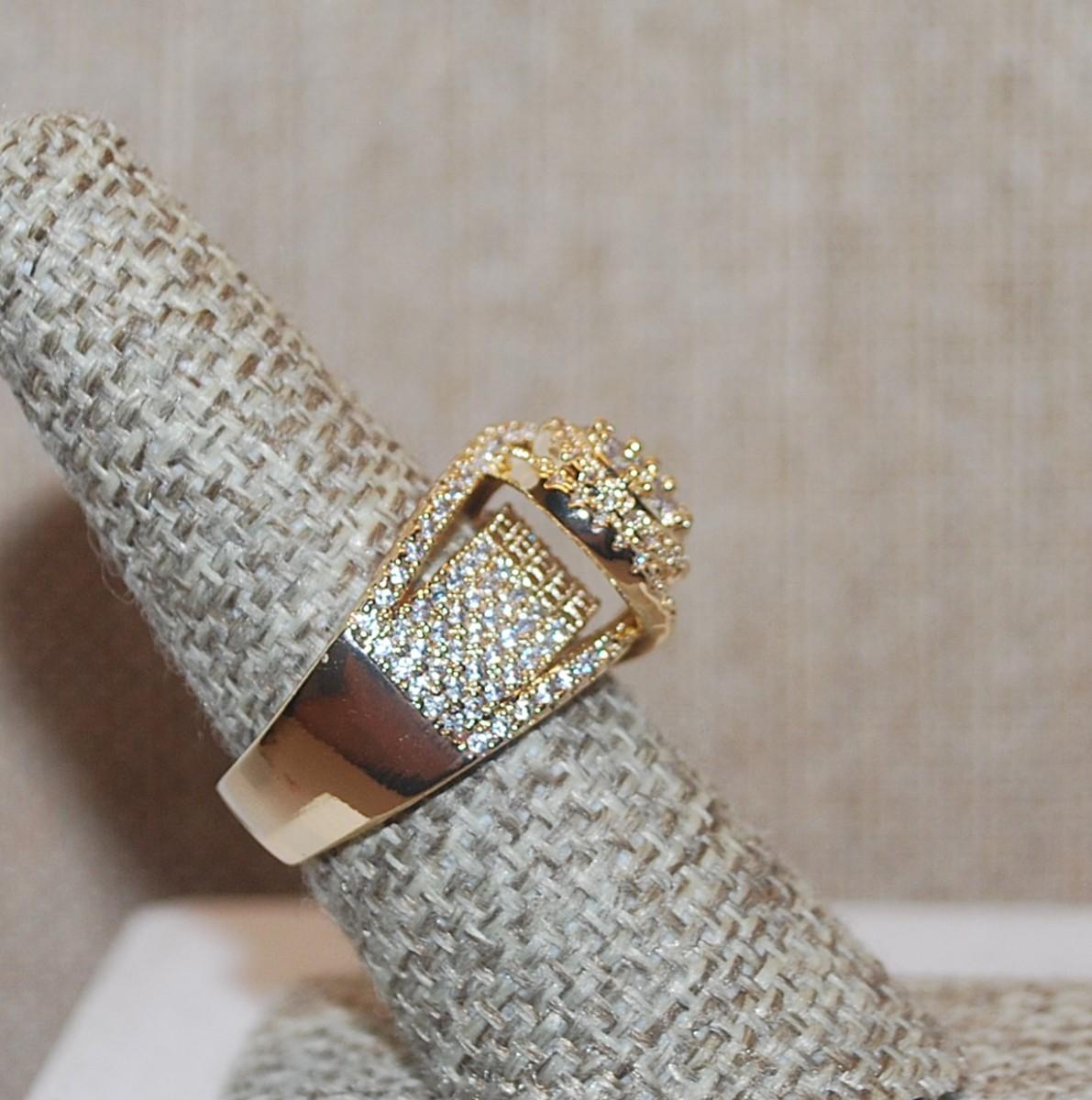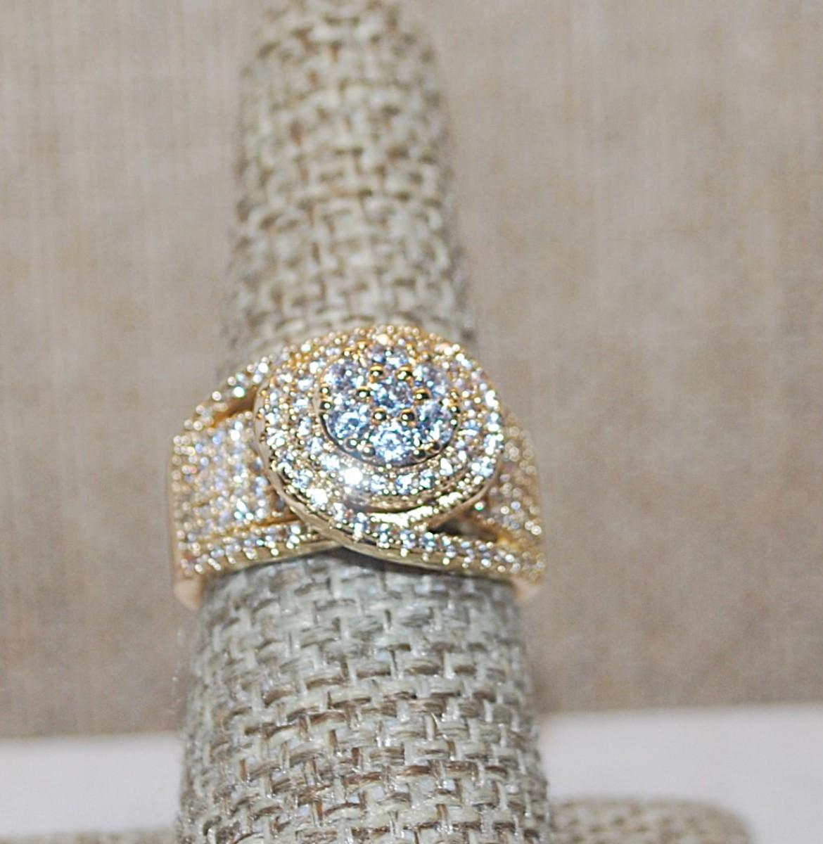 Size 7½ Brilliant Stones Party Ring on a Gold Tone Solid Band (8.7g)