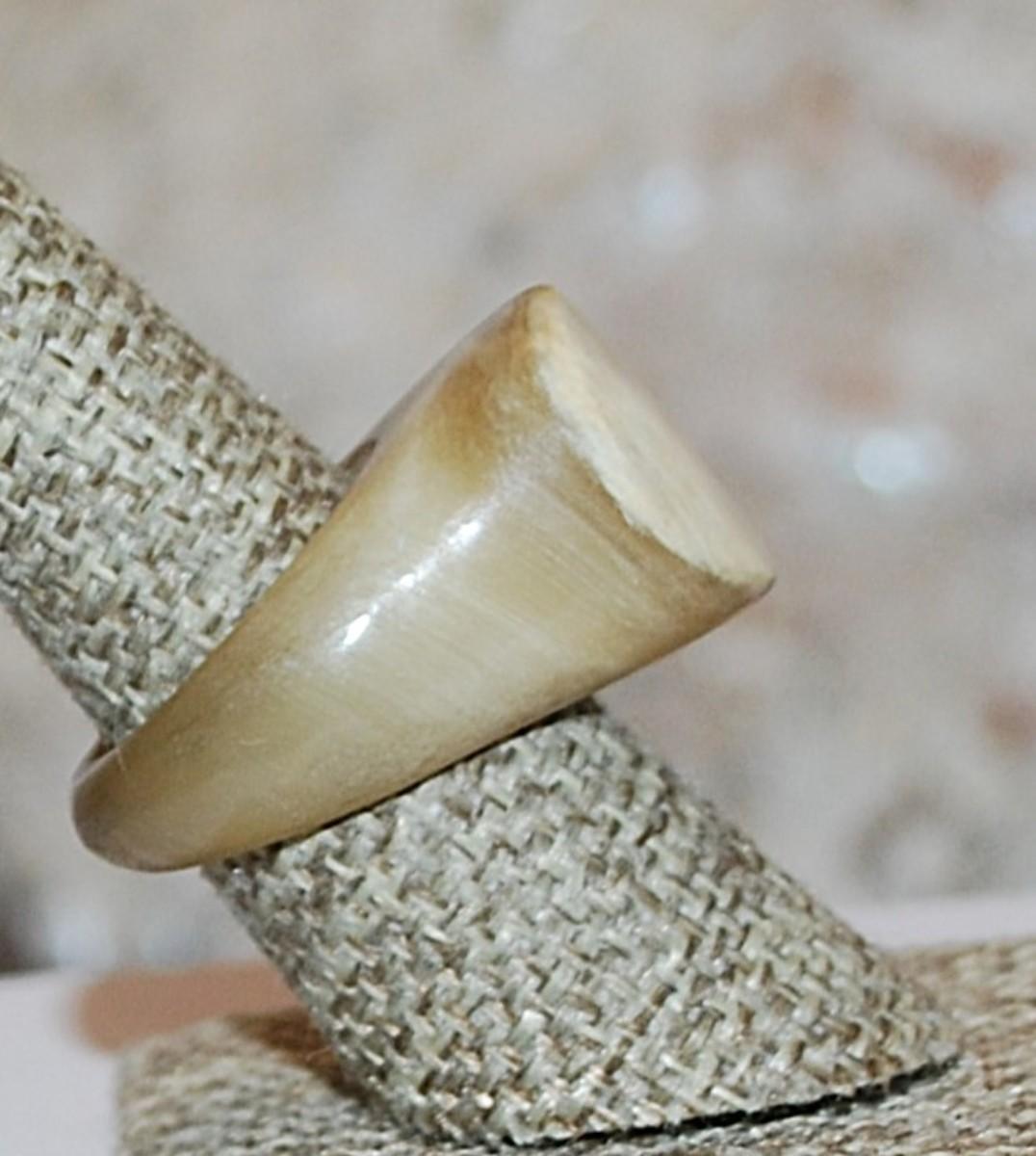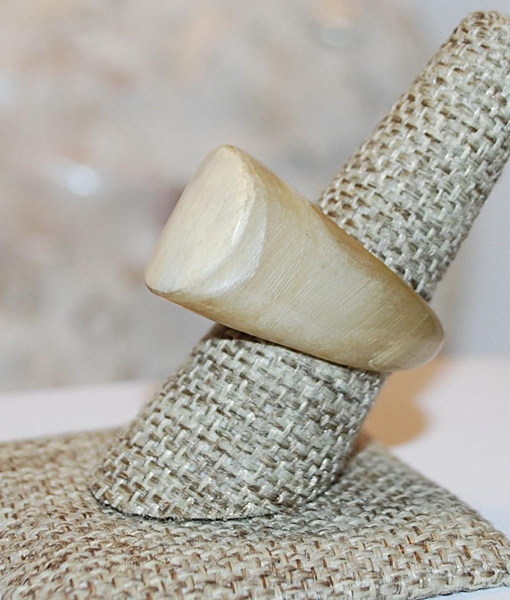 Size 7½ Chunky "Acrylic Tusk" Striated Carved Style Ring (5.9g)