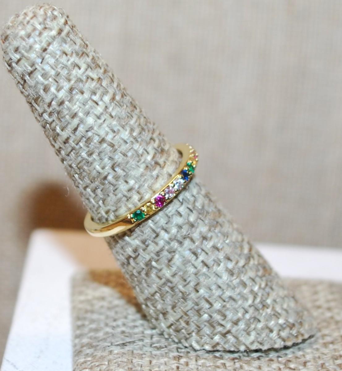 Size 7 Classic Multi-Color Red, Blue, Amber, Pink, Green & Clear Stones Ring on a Gold Tone Band (1.3g)