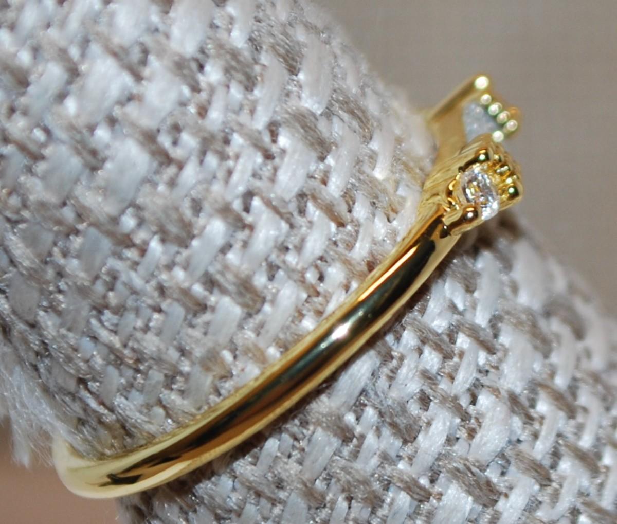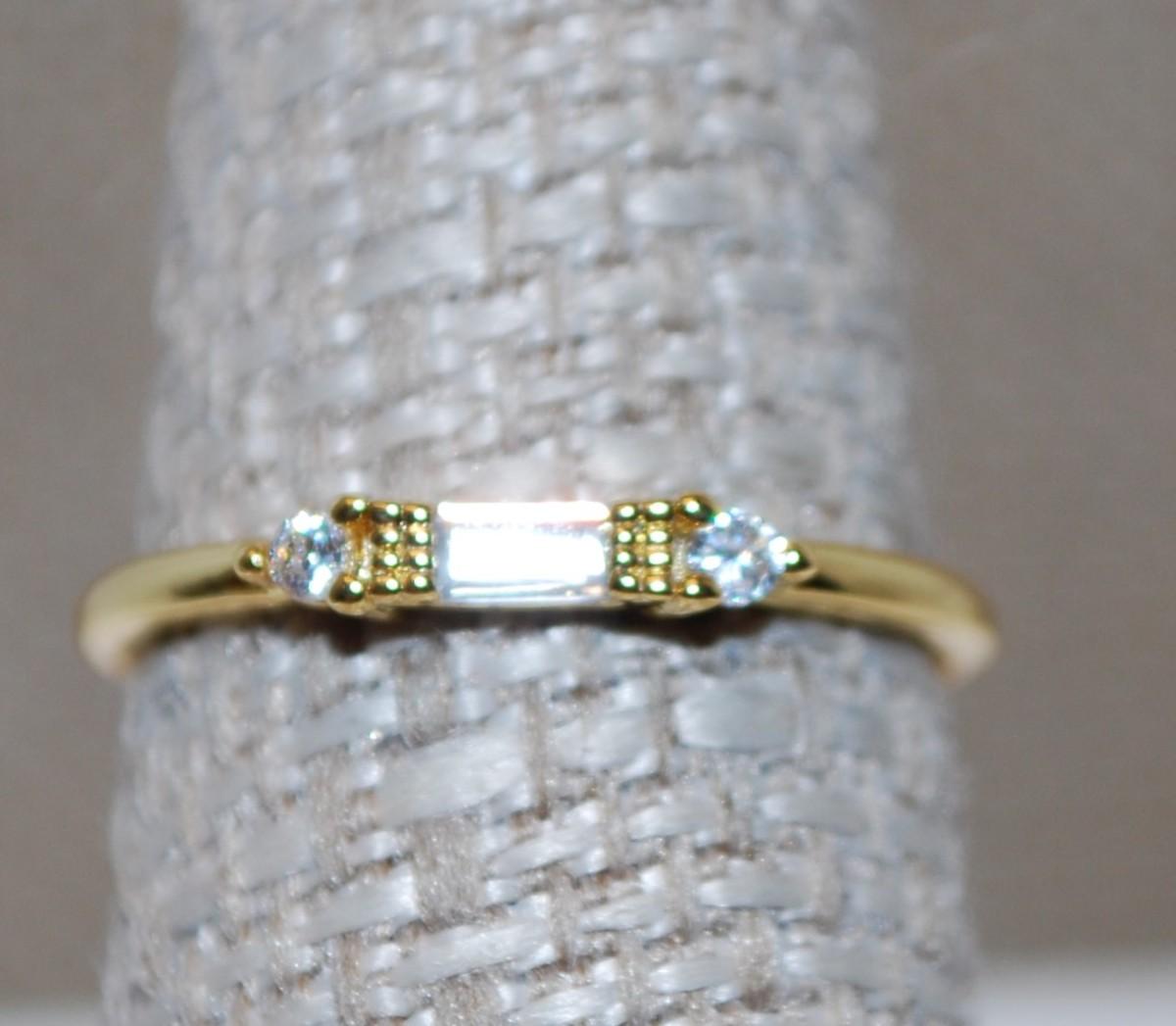 Size 7 Clear Rectangle Stone Ring with Side Gold Accents on a Gold Tone Band (1.3g)