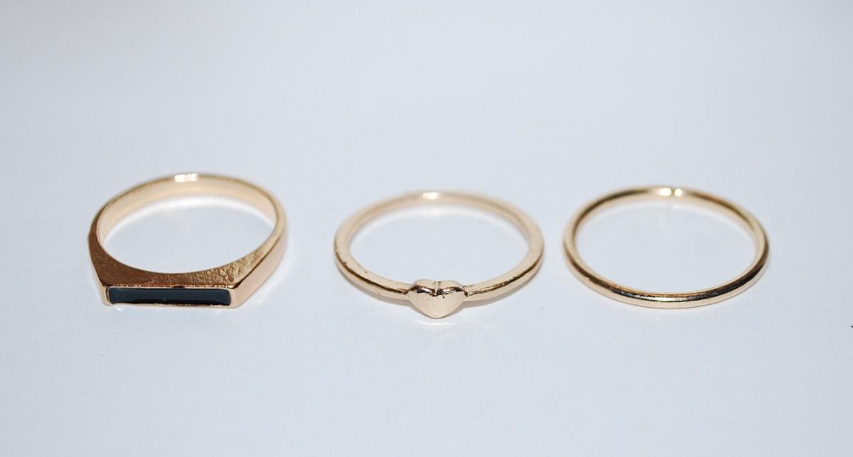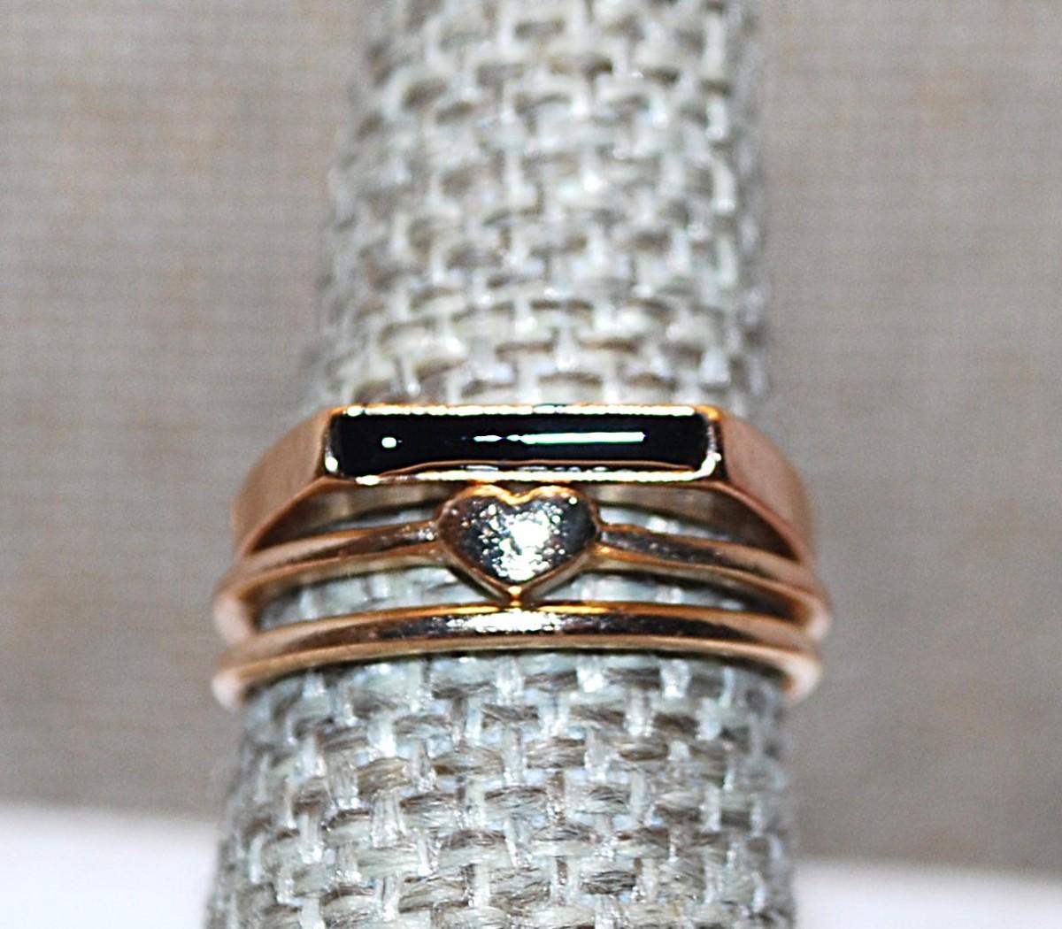 Size 7½ Collection of 3 RINGS -All Gold Tone; Small Heart; Black Enamel Stripe & No Stones Simple (3.5g)
