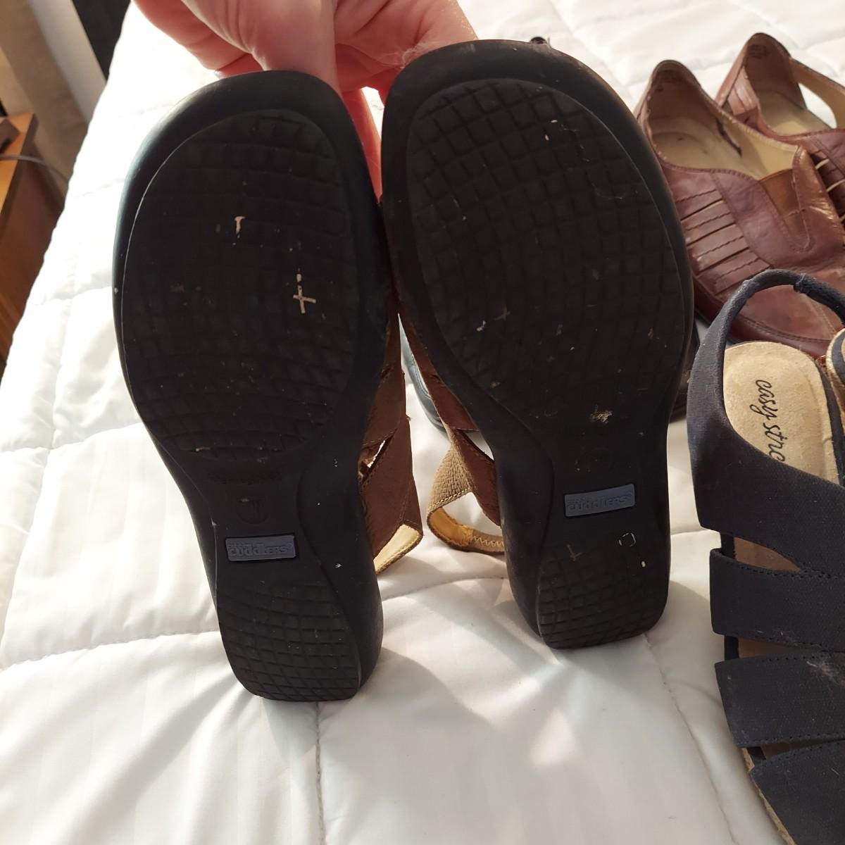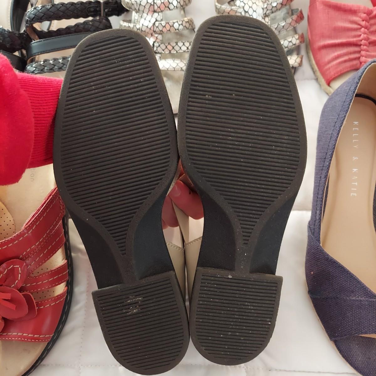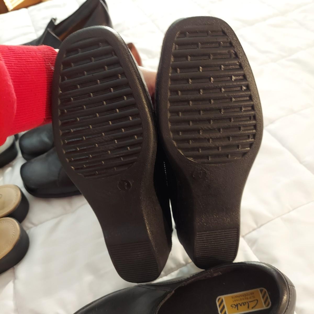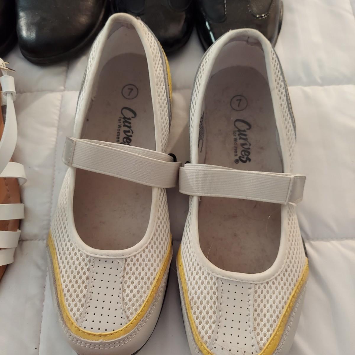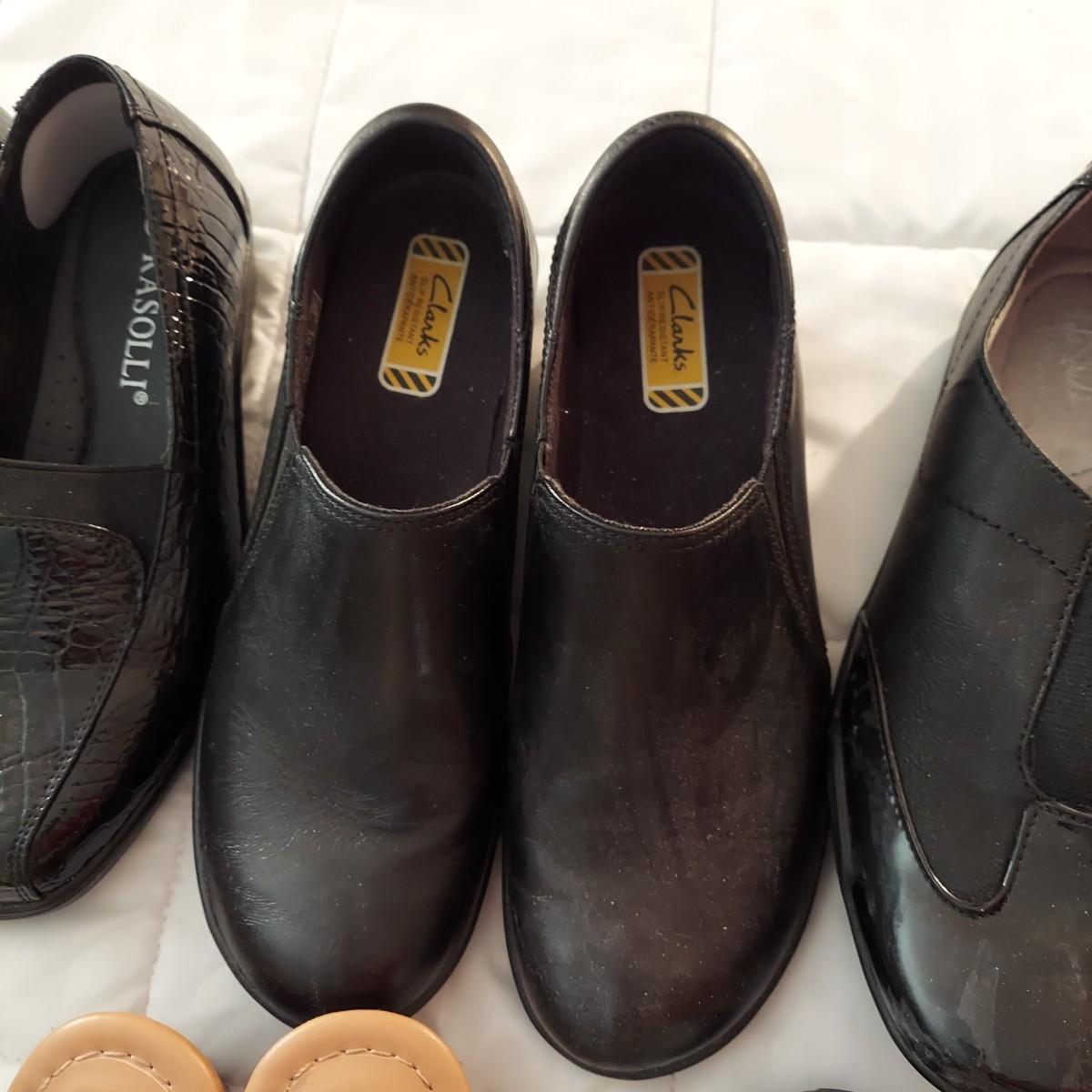 Lot includes 20+ pairs of women's shoes in size 7 by comfort brands like Clark's, Easy Spirit, Naturalizer, Life Stride, Aerosoles, Curves and more. Shoes are in used condition. Please see photos for details. Shipping available