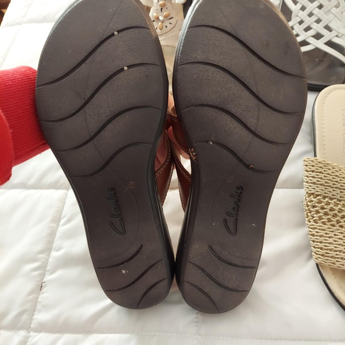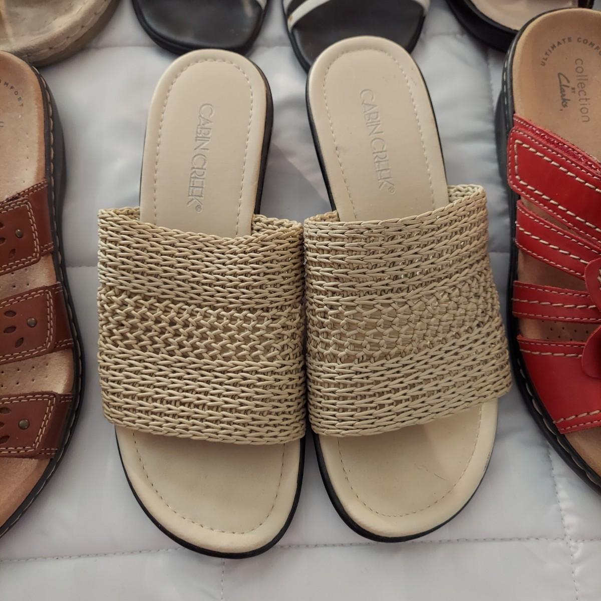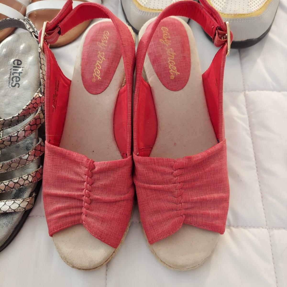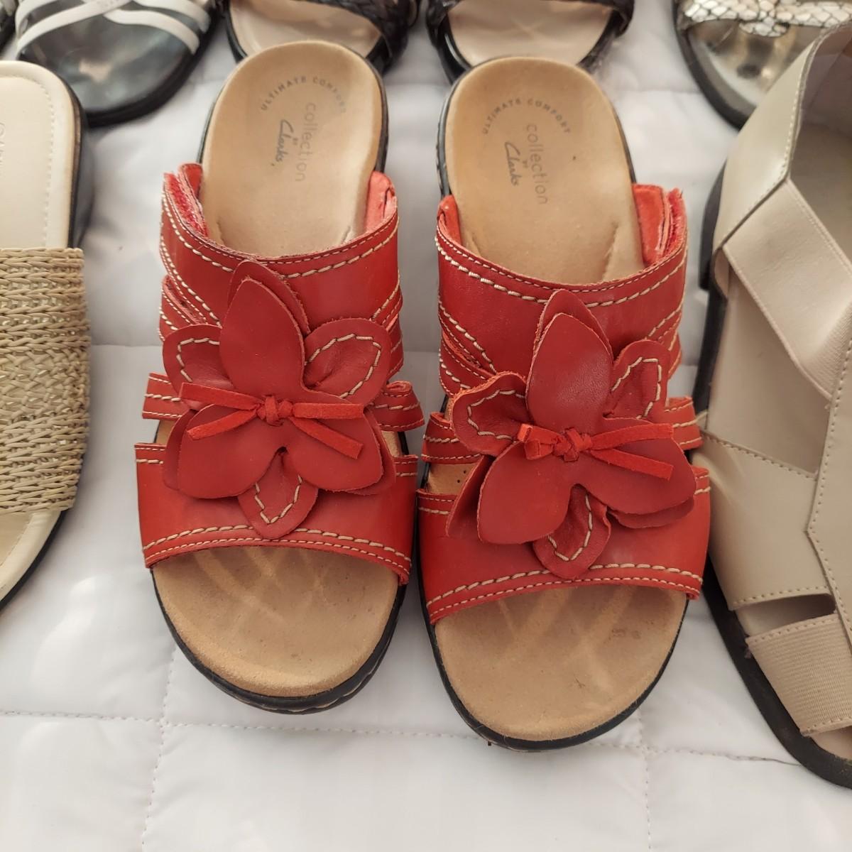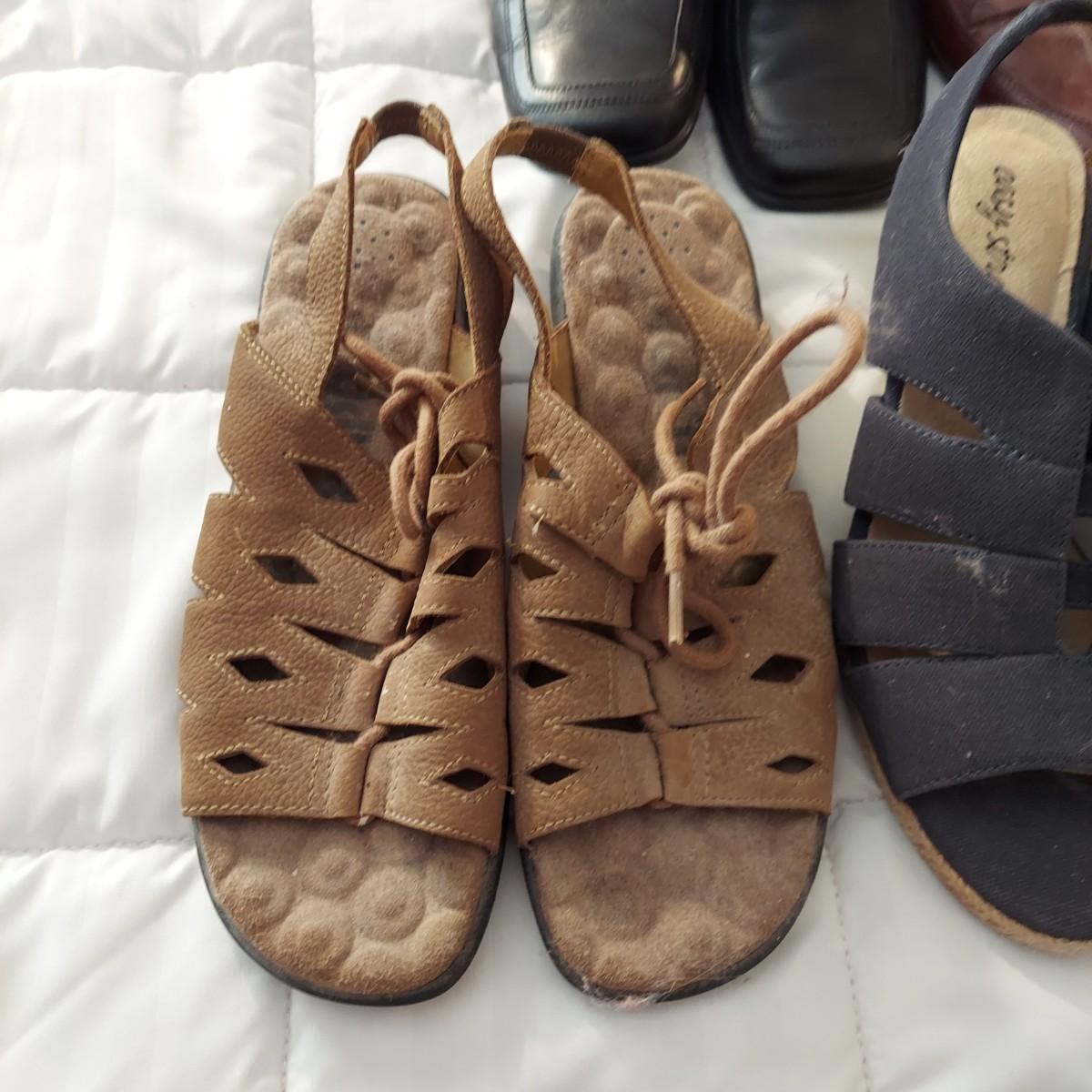 Lot includes 20+ pairs of women's shoes in size 7 by comfort brands like Clark's, Easy Spirit, Naturalizer, Life Stride, Aerosoles, Curves and more. Shoes are in used condition. Please see photos for details. Shipping available
