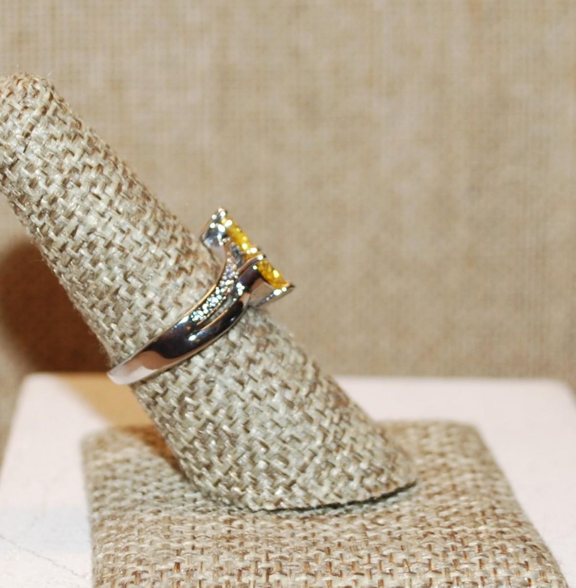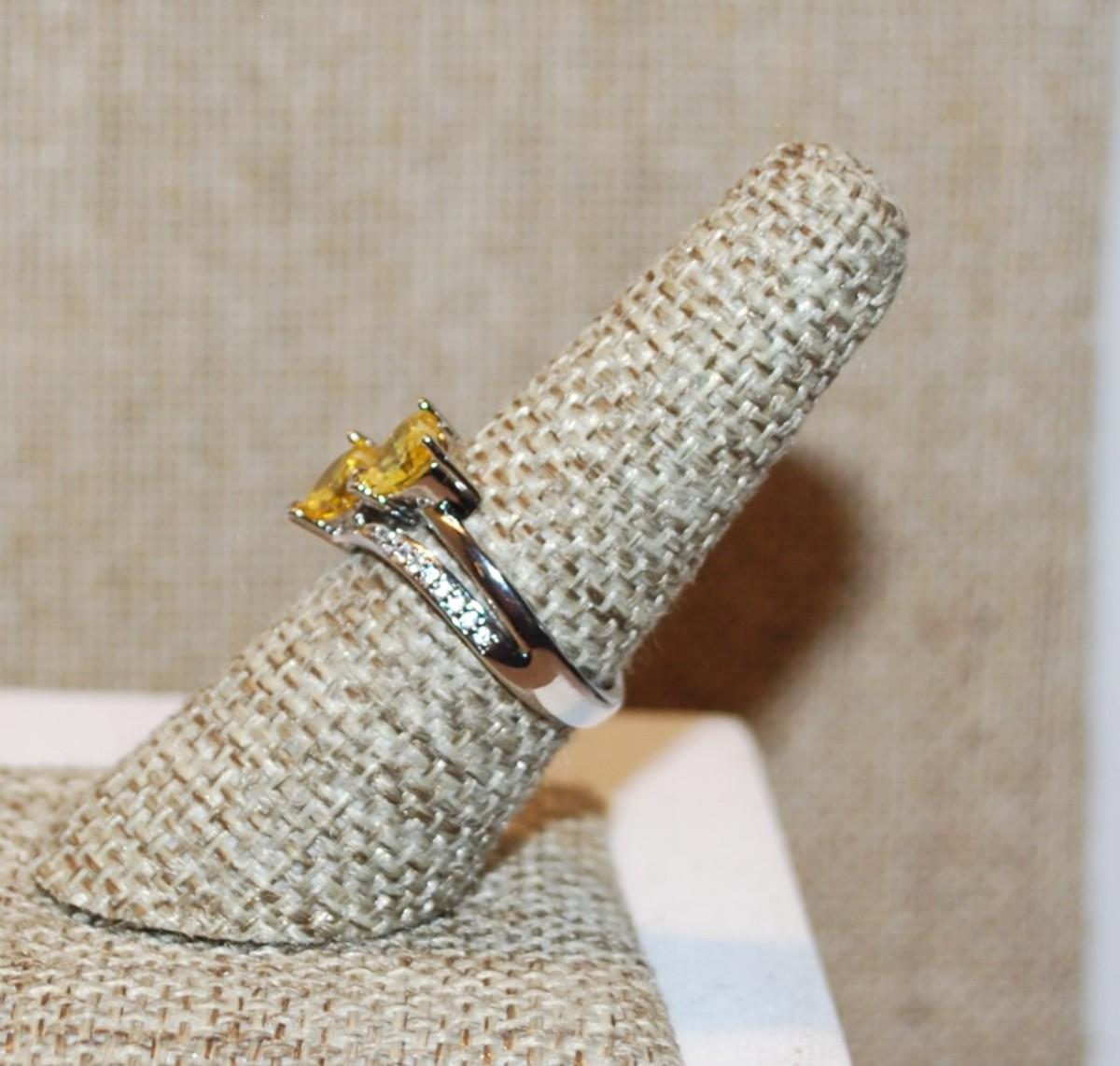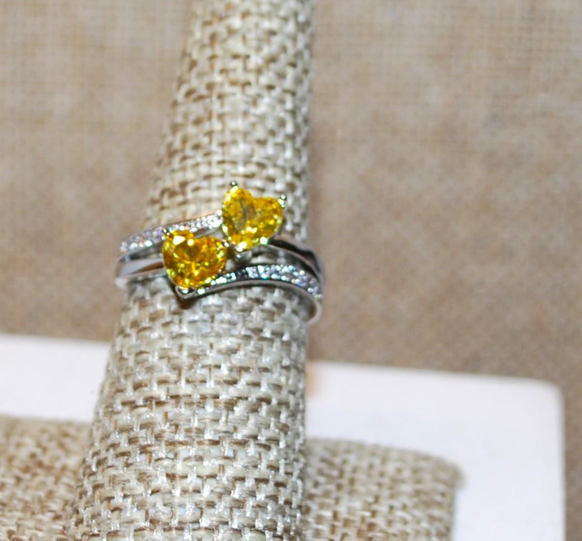Size 7¼ Connected Yellow HEARTS Ring with Clear Stone Accents on a Silver Band (3.6g)