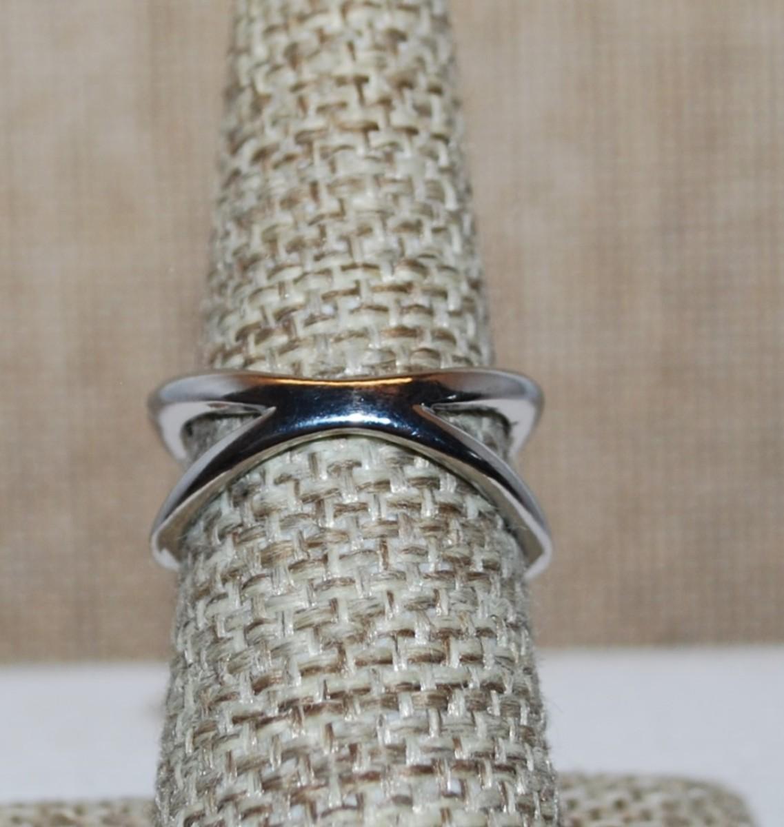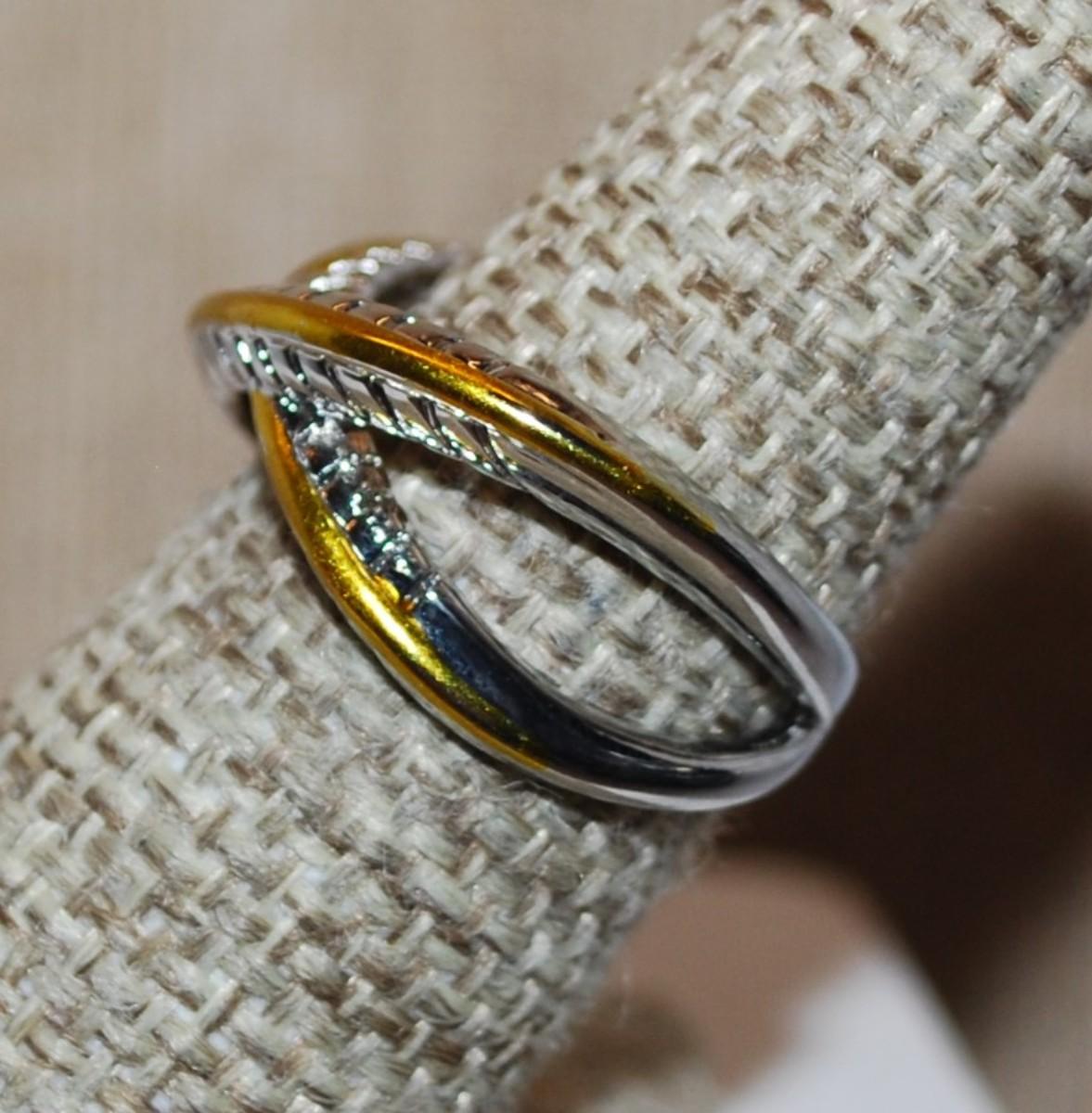 Size 7 Criss-Cross Silver Tone Band with Gold Colored Edging and Side Indents (4.5g)